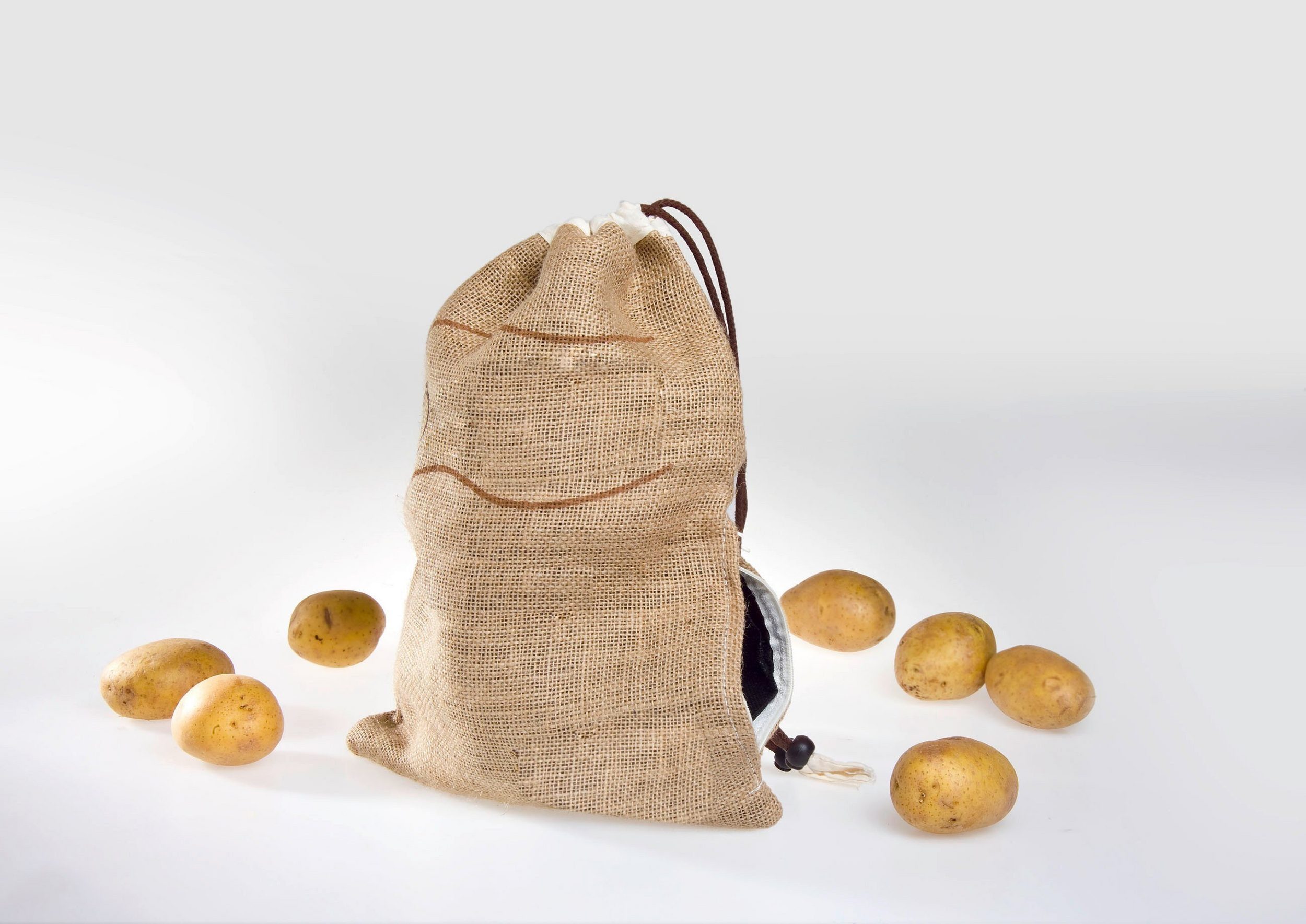Aufbewahrungsbeutel für Kartoffeln zum luftig und lichtgeschützt Lagern. Aus robusten Jute Gewebe und daher strapazierfähig und recyclebar Jute ist ein Naturmaterial und unterstützt als nachwachsender Rohstoff das nachhaltige Wirtschaften Der Beutel verfügt auch über ein Zugband zum verschließen