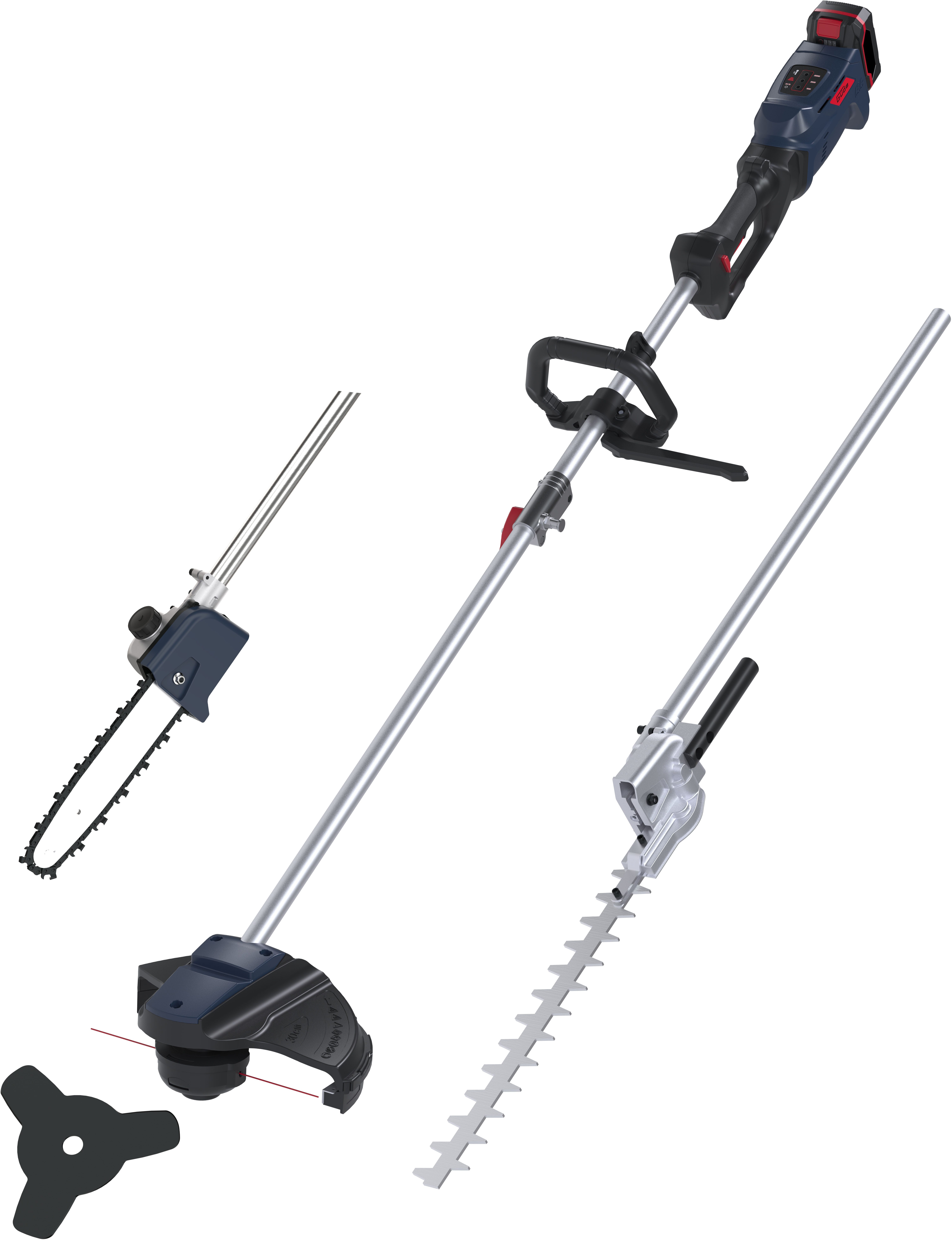 Lieferumfang | Akkupack 4 Ah Astkettensägenaufsatz Bedienungsanleitung Freischneider- und Trimmeraufsatz Gartenpflege-Set TGPS 18-401-30 Heckenscherenaufsatz Ladegerät 3 A |