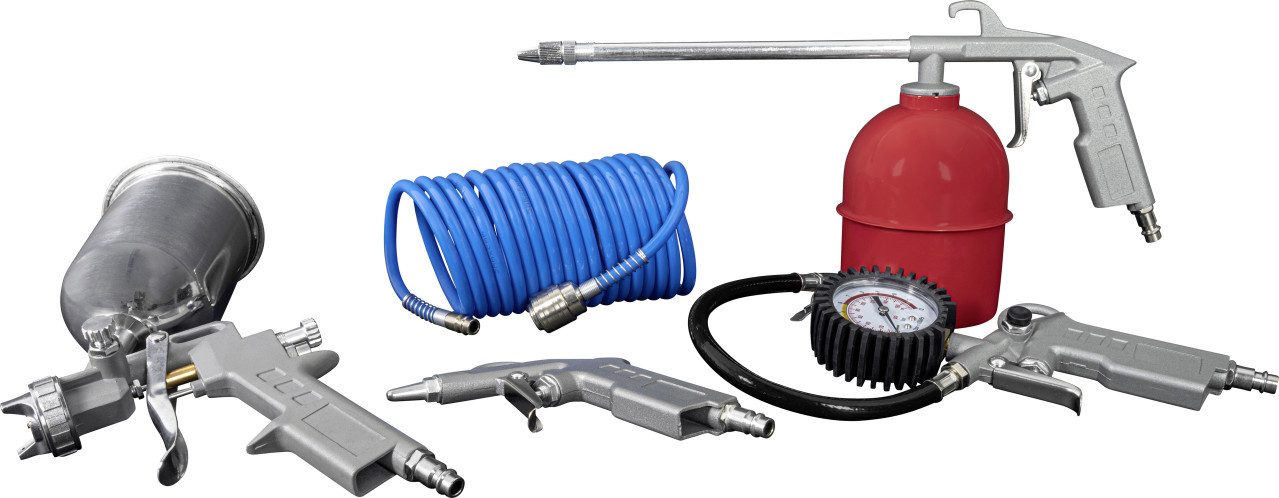 Spiral-Hochdruckschlauch ( 5 m) | Ausblaspistole | Reifenfüller | Fließbecher | Sprühpistole mt Stahlblechbehälter | 1/4 Zoll |