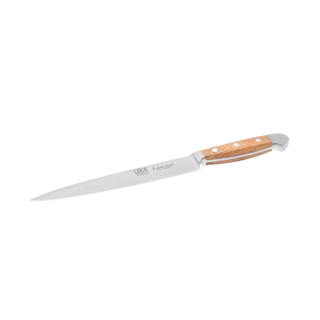 Erlebe höchste kulinarische Präzision mit dem GÜDE Schinkenmesser 21cm Alpha Fasseiche. Dieses exquisite Schinkenmesser aus der Alpha Fasseiche-Serie ist ein wahres Meisterwerk der Handwerkskunst. Die spitz zulaufende Klinge aus hochwertigem Chrom-Vanadium-Molybdän-Stahl sorgt für makelloses Schneiden mit außergewöhnlicher Schärfe und Langlebigkeit. Die Vielseitigkeit des Messers macht es zu einem unverzichtbaren Werkzeug in jeder Küche und bewältigt mühelos eine Vielzahl von Schneidaufgaben mit Präzision. Der Griff aus Eichenholz, das in über 80 Jahre alten Weinfässern gereift ist, vereint unvergleichliche Widerstandsfähigkeit mit einer eleganten Erscheinung. Rostfreie Edelstahl-Nieten und eine besondere Aluminium-Palmniete verbessern sowohl Funktionalität als auch Stil. Für beste Pflege solltest du das Messer von Hand waschen, um seine Schönheit und Integrität zu bewahren. Verwöhne deine Küche mit der unvergleichlichen Qualität des GÜDE Schinkenmessers Alpha Fasseiche.