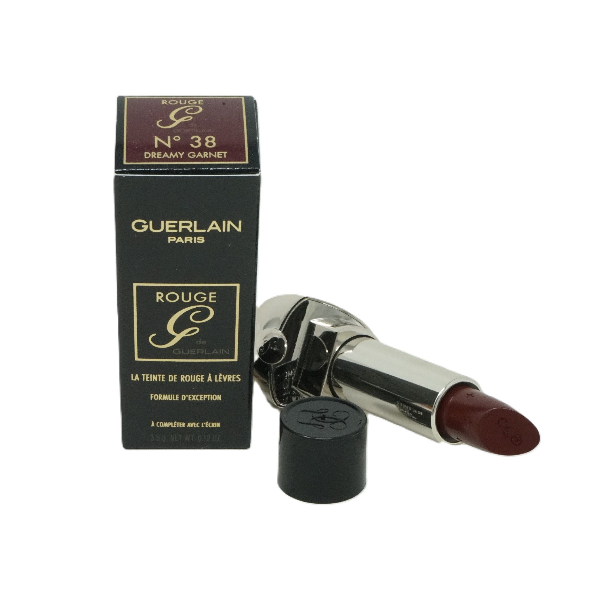 Der Guerlain Rouge G The Lipstick N°38 Dreamy Garnet vereint die Eleganz eines tiefen Granatrots mit einer hochpigmentierten, cremigen Formel für ein luxuriöses und langanhaltendes Finish Die reichhaltige Textur sorgt für geschmeidige Lippen während die feuchtigkeitsspendenden Inhaltsstoffe für optimalen Komfort und ein angenehmes Tragegefühl sorgen Perfekt für einen glamourösen und stilvollen Look