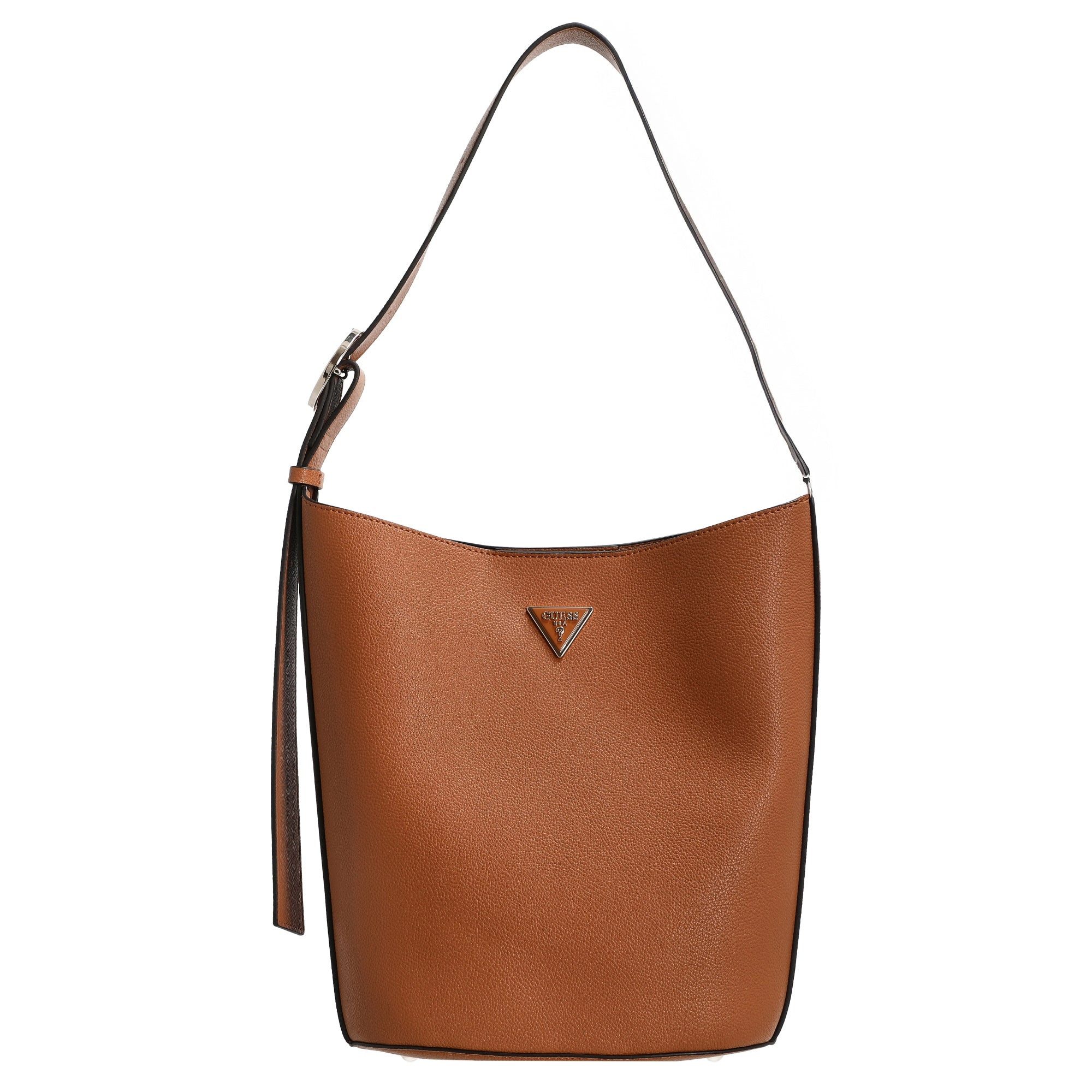 Die Guess Meridian II Bucket ist eine stilvolle Schultertasche in warmem Cognac, die sich perfekt in jeden modischen Alltag einfügt. Das zeitlose Design kombiniert Eleganz mit praktischem Nutzen und setzt mit dem markanten GUESS-Logo ein dezentes Statement. * Hochwertiges Material – die Tasche besticht durch eine edle, strukturierte Oberfläche, die Robustheit und Stil vereint. * Geräumiges Hauptfach – bietet ausreichend Platz für alle wichtigen Essentials, ideal für den täglichen Einsatz. * Abnehmbare Pouch – sorgt für zusätzliche Organisation und Flexibilität beim Verstauen kleinerer Gegenstände. * Verstärkter Boden – garantiert Stabilität und schützt die Tasche vor Abnutzung. * Zipper-Verschluss – sichert den Inhalt zuverlässig und ermöglicht einen schnellen Zugriff. Ob im Büro, beim Stadtbummel oder zu besonderen Anlässen – die Guess Meridian II Bucket in Cognac ist eine elegante Begleiterin, die Stil und Funktionalität harmonisch verbindet.
