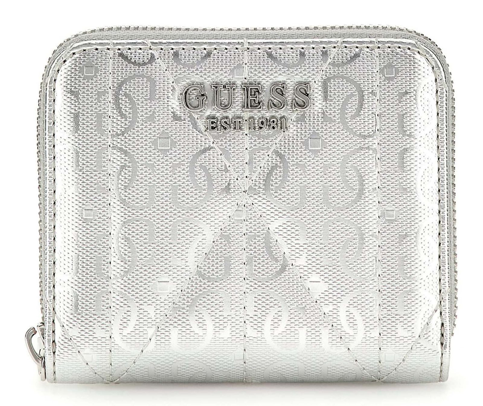 Diese GUESS Geldbörse ist der ideale Begleiter für alle, die Wert auf eine gelungene Mischung aus Stil und Funktionalität legt. Mit ihren vielseitigen Fächern, der edlen silberfarbenen Oberfläche und der stilvollen Logo-Applikation bietet sie nicht nur eine sichere Aufbewahrung für Ihre Wertsachen, sondern fungiert auch gleichzeitig als ein modisches Statement. Die kompakte Размер der Geldbörse ermöglicht es, sie bequem in jeder Hosentasche, Handtasche oder Jackentasche zu verstauen. Lassen auch Sie sich von der GUESS Aldina SLG Small Zip Around Wallet Geldbörse begeistern!