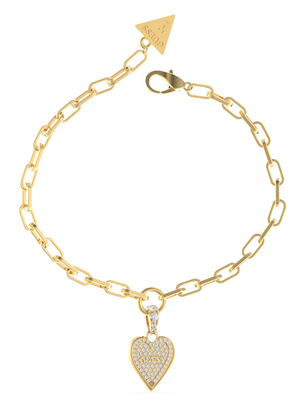 Das GUESS Love Me Tender Pave Heart Paperlink Bracelet, ein kleines Accessoire, welches Ihrem Styling im Handumdrehen einen gewissen Pepp verleiht. Das GUESS Armband liegt mit seiner zarten Kette sanft um Ihr Handgelenk und das glänzend, goldfarbene Logo, mit schimmernd verzierten Steinen verleiht Glamour und Stilsicherheit! Modisch und detailliert ist das GUESS Love Me Tender Pave Heart Paperlink Bracelet S und lässt sich durch seine schlichte Art vielseitig kombinieren.