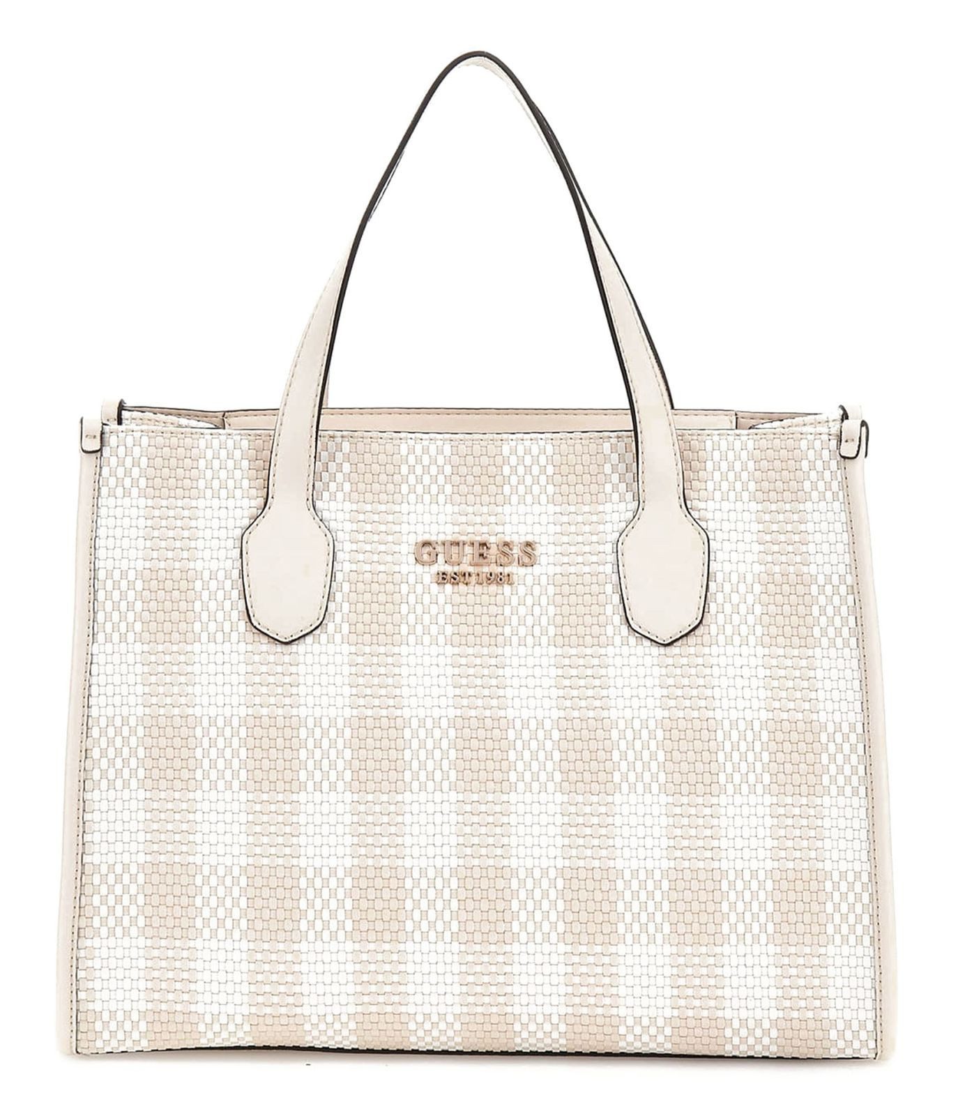 Diese stylische GUESS Handtasche überzeugt auf ganzer Linie! Modern und schick zeigt diese Tasche, wie man immer stilvoll unterwegs sein kann, denn ihre innovative Optik ist immer passend und einfach kombinierbar. Die GUESS Silvana 2 Compartment Mini Tote hat zudem ein aufgeteiltes Hauptfach, in das Smartphone, Geldbörse und Hausschlüssel sicher und ordentlich verstaut werden kann und Sie stets über Ihre Habseligkeiten den Überblick behalten. Bei diesem Prachtstück hat GUESS Alltagstauglichkeit und Mode optimal kombiniert. Lassen Sie sich diese schicke Schultertasche nicht entgehen!