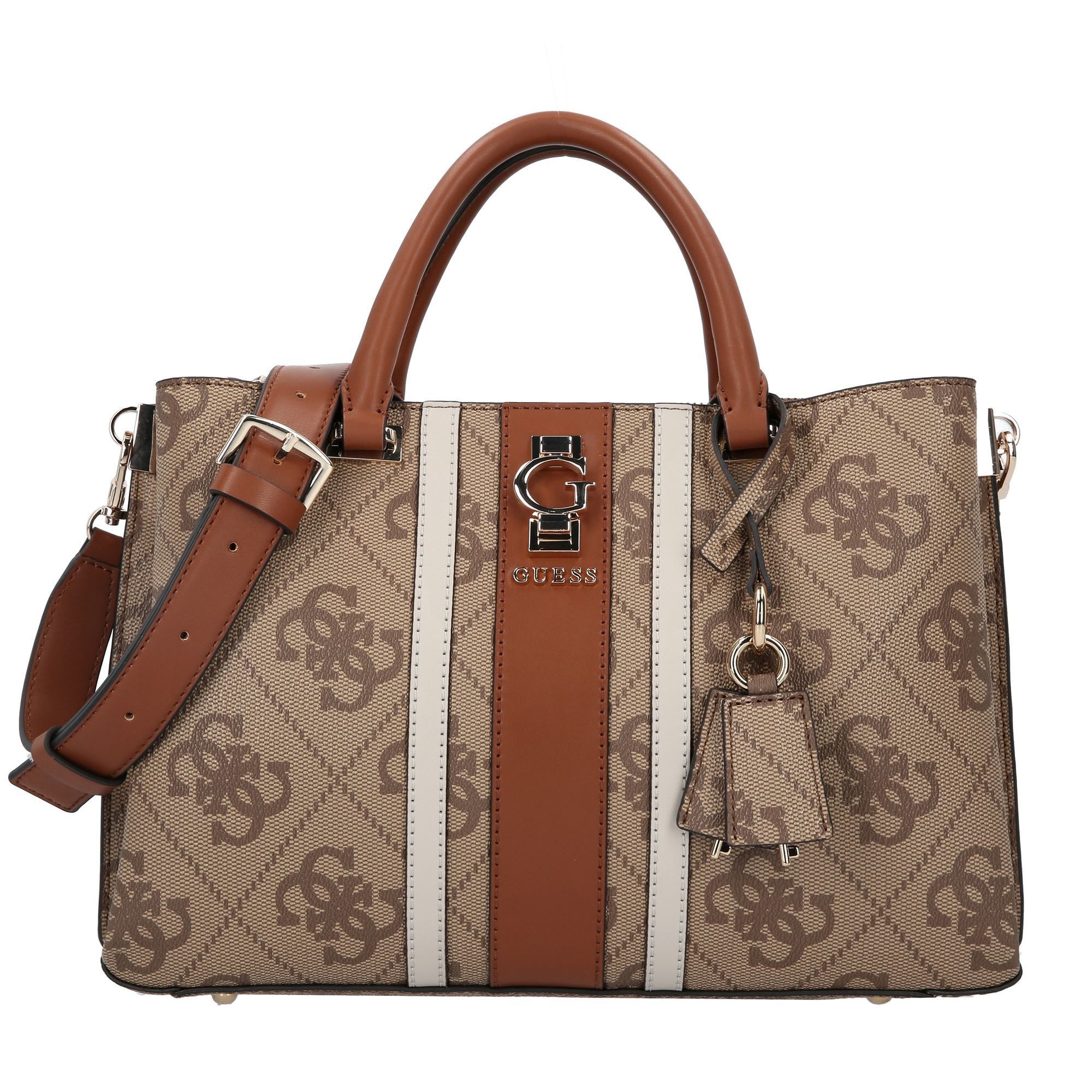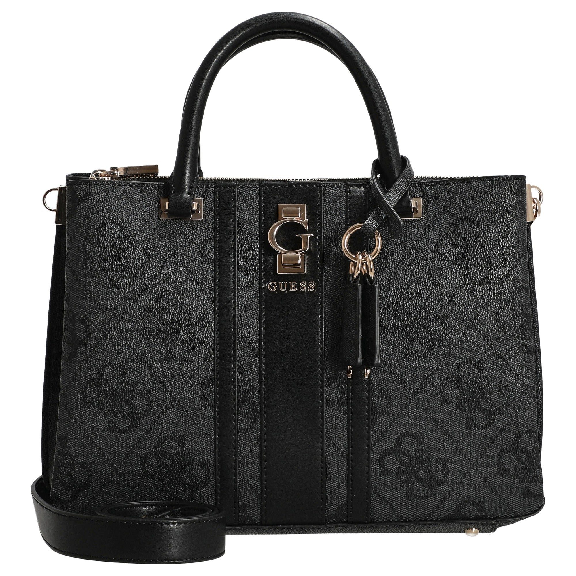 Die Guess Erenia Girlfriend Henkeltasche in elegantem coal überzeugt mit ihrem modernen Design und hochwertigen Details. Kunstleder in Kombination mit hellgoldfarbenen Metallakzenten verleiht der Tasche eine zeitlose Eleganz, die sich mühelos in jeden Look integrieren lässt. * Markantes 4G-Logoprint – sorgt für einen unverwechselbaren Style und macht die Tasche zum echten Hingucker. * Praktischer Verschluss – Reißverschluss und zwei Knöpfe garantieren sicheren Schutz für Ihre Habseligkeiten. * Abnehmbarer Logo-Charm – verleiht der Tasche eine persönliche Note und lässt sich je nach Stimmung abnehmen. * Durchdachte Innen- und Außentaschen – mit Reißverschluss für optimale Organisation und schnellen Zugriff. * Edles Logofutter – setzt auch im Inneren stilvolle Akzente und unterstreicht die hochwertige Verarbeitung. Ob im Alltag oder zu besonderen Anlässen – die Guess Erenia Henkeltasche in coal ist ein vielseitiger Begleiter, der Stilbewusstsein und Funktionalität perfekt verbindet.