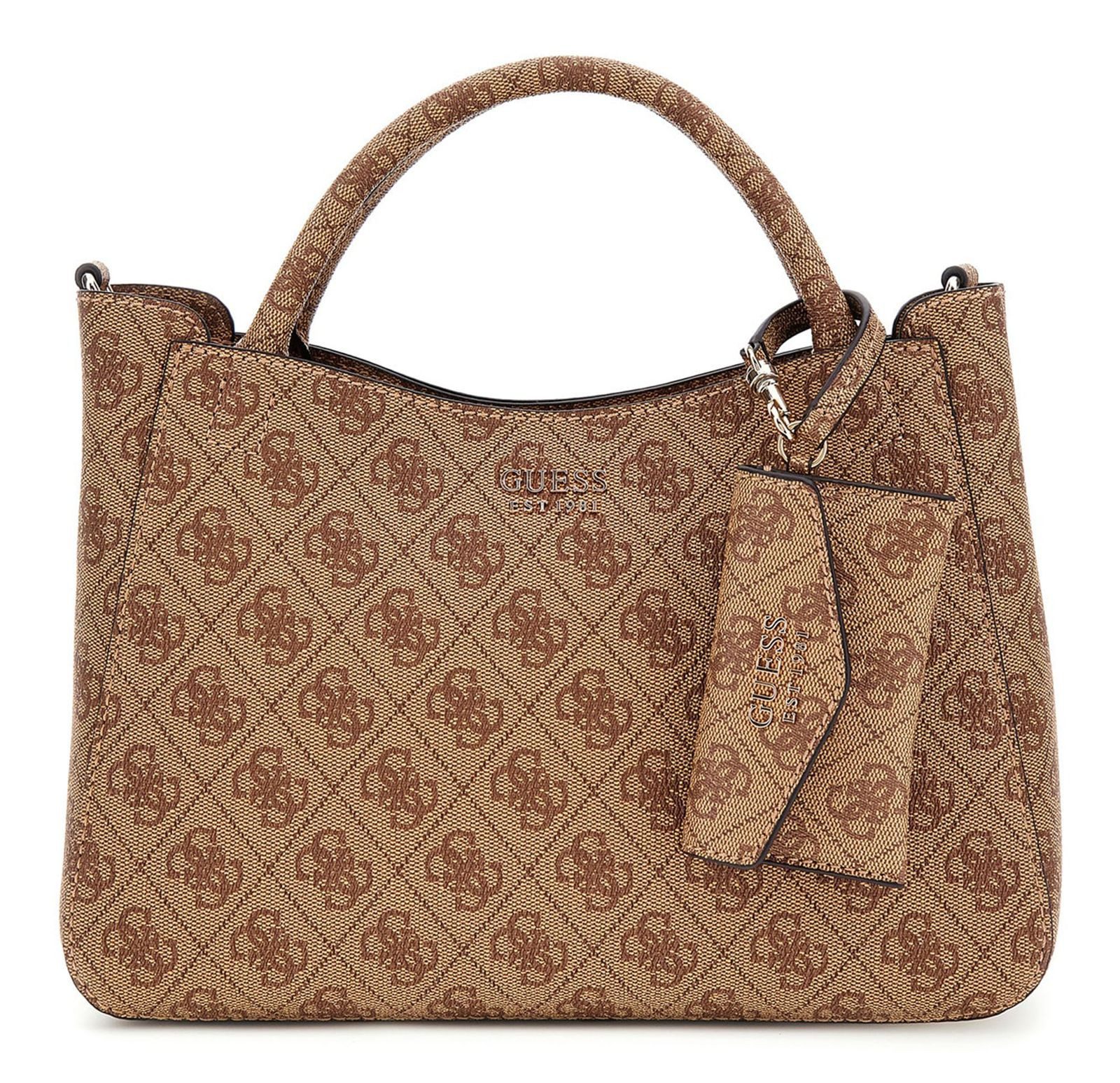 Die GUESS Brenton Girlfriend Satchel ist ein echtes Meisterwerk. Mit den verstärkten Henkeln stilsicher an der Hand oder mit dem verstellbaren Schulterriemen entspannt umgehängt - so sind Sie den Tag über variable unterwegs. Mit dem schicken Design werden Sie dabei die Blicke auf sich ziehen! Im großzügigen, gegliederten Hauptfach der Tasche bekommen Sie Ihre Alltagsgegenstände ordentlich unter. Dank der kleinen Utensilientasche haben Sie auch kleinere Habseligkeiten wie Lippenstift oder Tempos schnell griffbereit. Zudem wertet die GUESS Brenton Handtasche jedes Ihrer Outfits auf und verleiht ihnen einen einzigartigen Look.