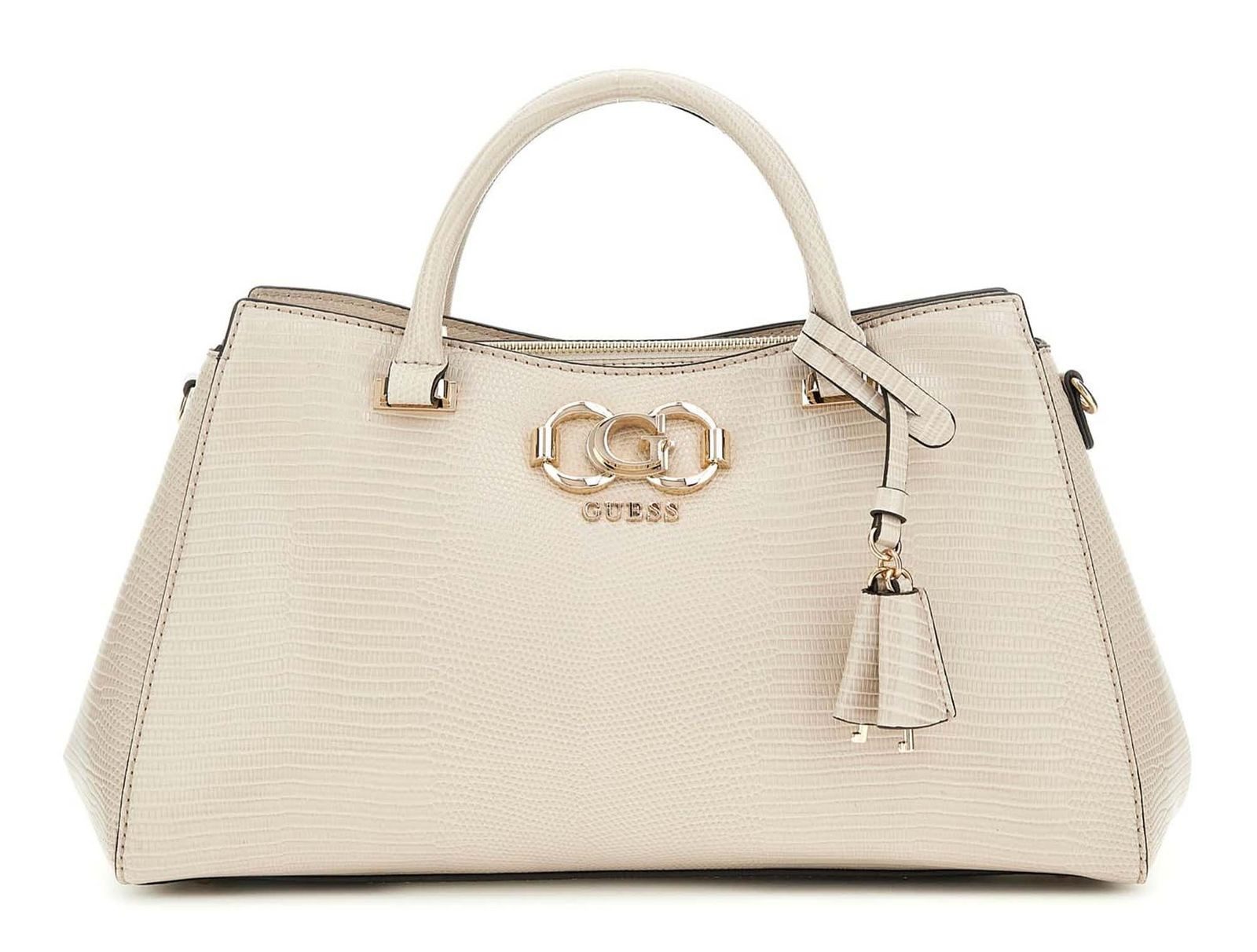 Sie sind auf der Suche nach einer modischen, praktischen und zugleich modernen Handtasche? Mit dieser Salinge Luxury Satchel haben Sie genau den richtigen Begleiter gefunden. Der abnehmbare und vor allem verstellbare Schulterriemen erlaubt Ihnen einen zweiten Look auszuprobieren, denn die Tasche lässt sich ganz einfach zur Umhängetasche umfunktionieren. Optisch überzeugt sie mit spannender Schlangenlederoptik und goldfarbenen Details. Die GUESS Salinge Luxury Satchel verkörpert die ideale Kombination aus moderner Raffinesse und klassischer Funktionalität - ideal für modebewusste Frauen!