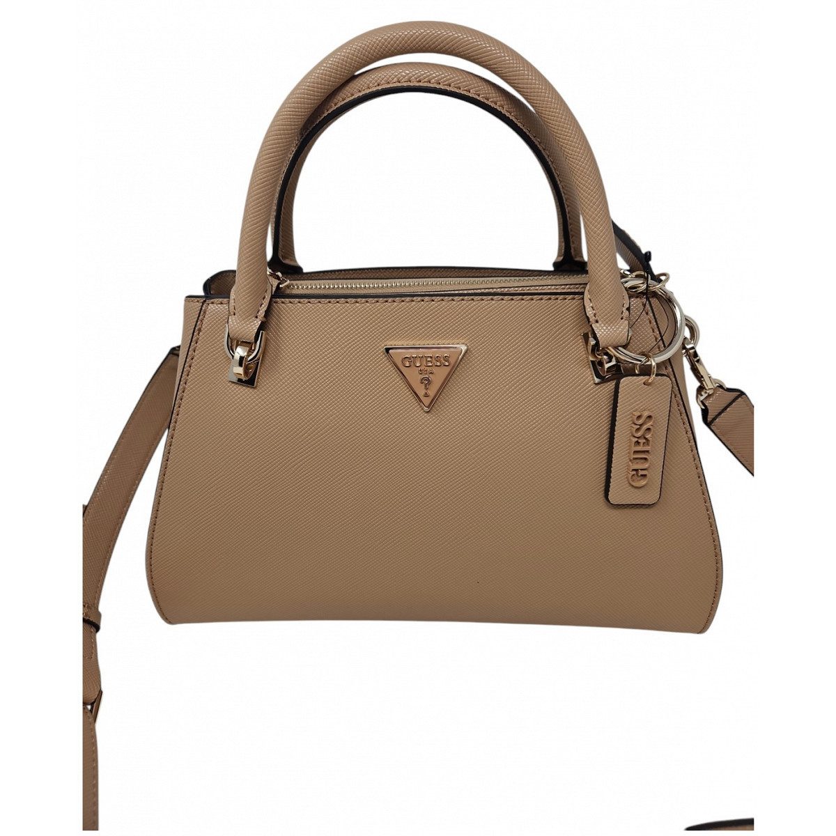 Sie sind auf der Suche nach einer stylischen, praktischen und zugleich modernen Handtasche? Mit dieser Noelle Luxury Satchel haben Sie genau den richtigen Begleiter gefunden. Der abnehmbare Schulterriemen erlaubt Ihnen einen zweiten Look auszuprobieren, denn die Tasche lässt sich ganz einfach zur Umhängetasche umfunktionieren. Optisch überzeugt Sie mit präziser Linienführung und goldfarbenen Details. Die GUESS Noelle Luxury Satchel verkörpert die ideale Kombination aus klassischer Raffinesse und moderner Funktionalität - ideal für stilsichere Frauen!