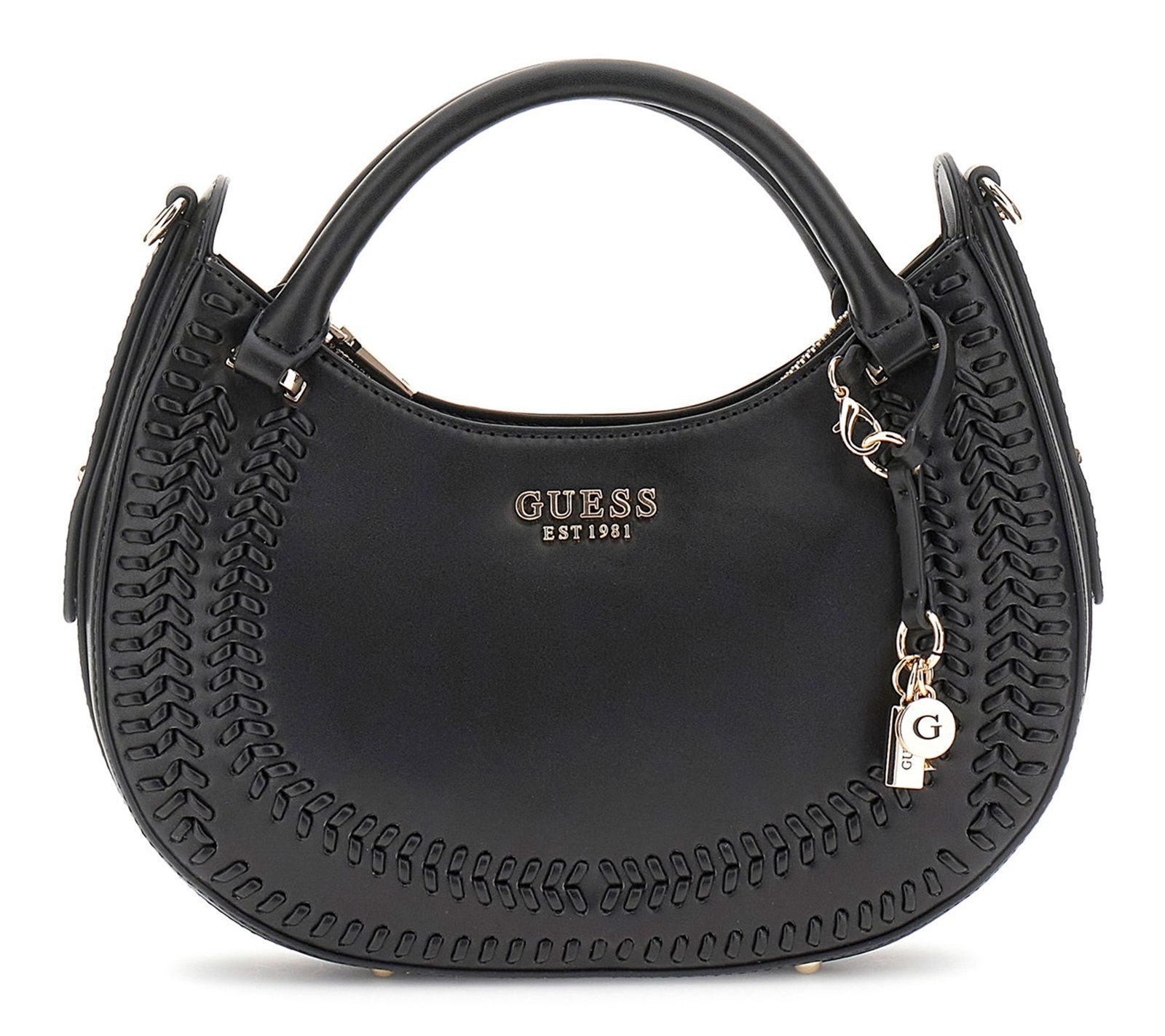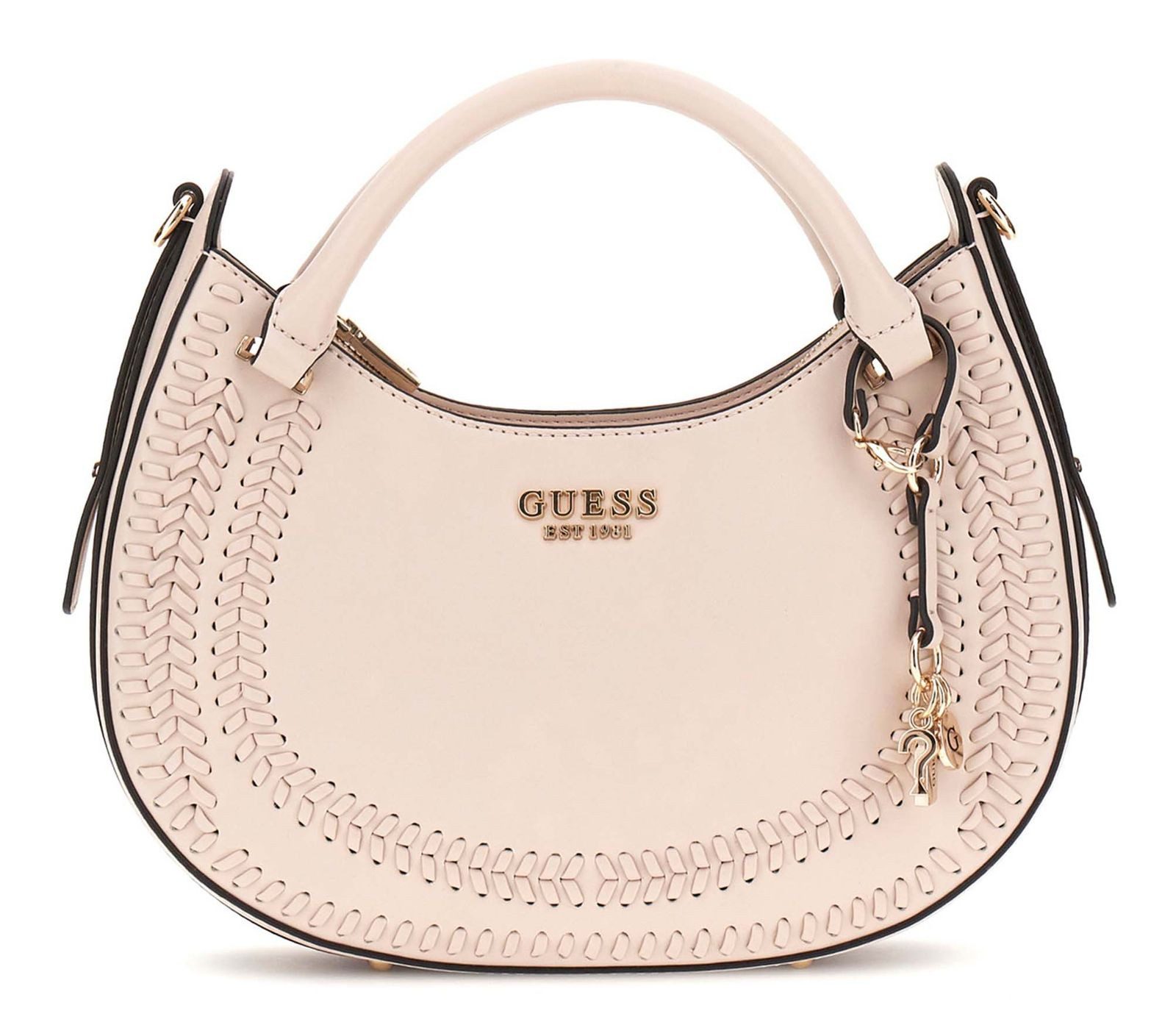 Sie sind auf der Suche nach einer stylischen, praktischen und zugleich modernen Handtasche? Mit dieser Tatum Satchel Bag haben Sie genau den richtigen Begleiter gefunden. Der abnehmbare Schulterriemen erlaubt Ihnen einen zweiten Look auszuprobieren, denn die Tasche lässt sich ganz einfach zur Umhängetasche umfunktionieren. Optisch überzeugt sie mit geschwungenem Format, lieblichem Logo-Charm und goldfarbenen Details. Die GUESS Tatum Satchel Bag verkörpert die ideale Kombination aus klassisch eleganter Raffinesse und moderner Funktionalität - ideal für modebewusste Frauen!