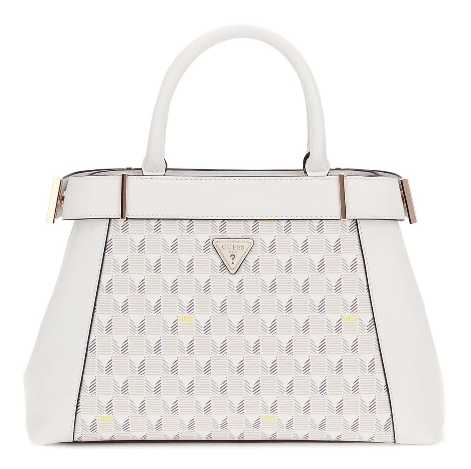 Sie wollen ein stylisches Accessoire im mit cooler Musterung? Dann ist die GUESS G Wave II Satchel Bag das perfekte Schmuckstück für Sie. Das ansprechende Design mit goldfarbenen Details und in alltagstauglichem Format überzeugt sofort und lässt sich durch seine schlichte Eleganz mit sämtlichen Outfits kombinieren. Im getrennten Hauptfach bringen Sie Smartphone und Geldbörse aufgeräumt unter. Wir konnten dem Charme dieser Tasche nicht widerstehen! Werden auch Sie ein Fan!