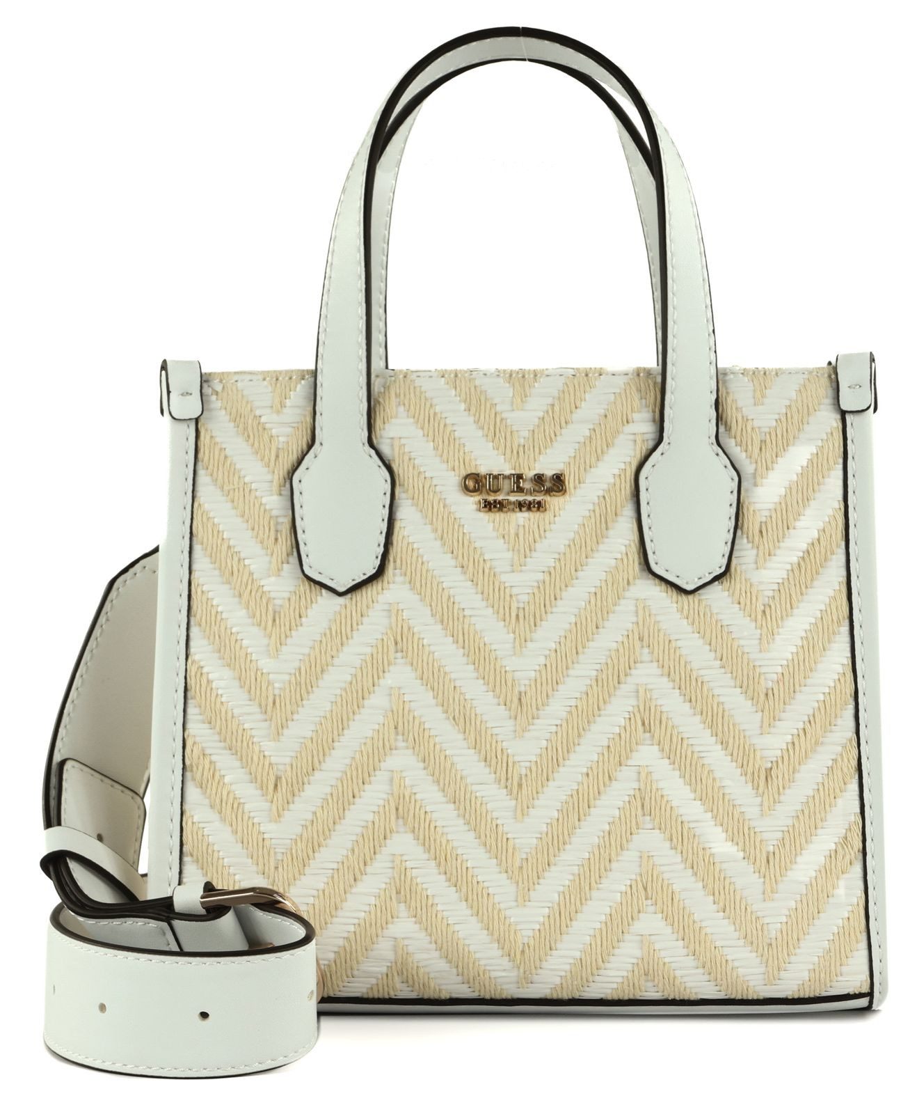 Mit dieser GUESS Tasche in erfrischendem und markantem Design können Sie beneidende Blicke auf sich ziehen und gekonnt ein Fashion-Statement setzen. So beweisen Sie immer Stilsicherheit und Modebewusstsein. Diese Handtasche lässt sich zusätzlich mit einem Schulterriemen als Umhängetasche tragen. In dem Hauptfach finden all Ihre Essentials einen eigenen Platz und sind dank des Verschlusses immer sicher verstaut. Diese GUESS Silvana Two Compartment Mini Tote Handtasche wird Ihrem Look einen stilvollen Touch verleihen!