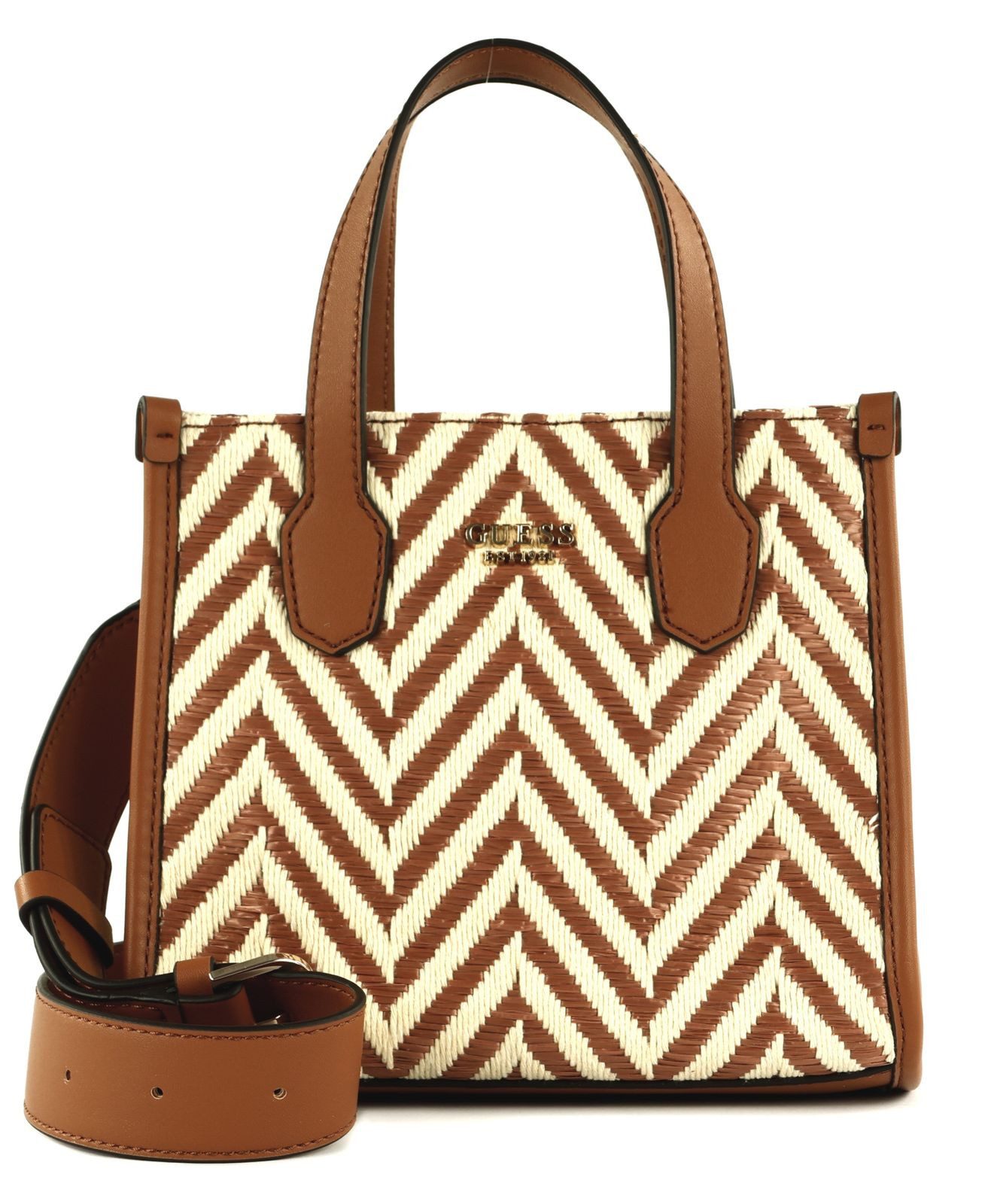 Mit dieser GUESS Tasche in erfrischendem und markantem Design können Sie beneidende Blicke auf sich ziehen und gekonnt ein Fashion-Statement setzen. So beweisen Sie immer Stilsicherheit und Modebewusstsein. Diese Handtasche lässt sich zusätzlich mit einem Schulterriemen als Umhängetasche tragen. In dem Hauptfach finden all Ihre Essentials einen eigenen Platz und sind dank des Verschlusses immer sicher verstaut. Diese GUESS Silvana Two Compartment Mini Tote Handtasche wird Ihrem Look einen stilvollen Touch verleihen!