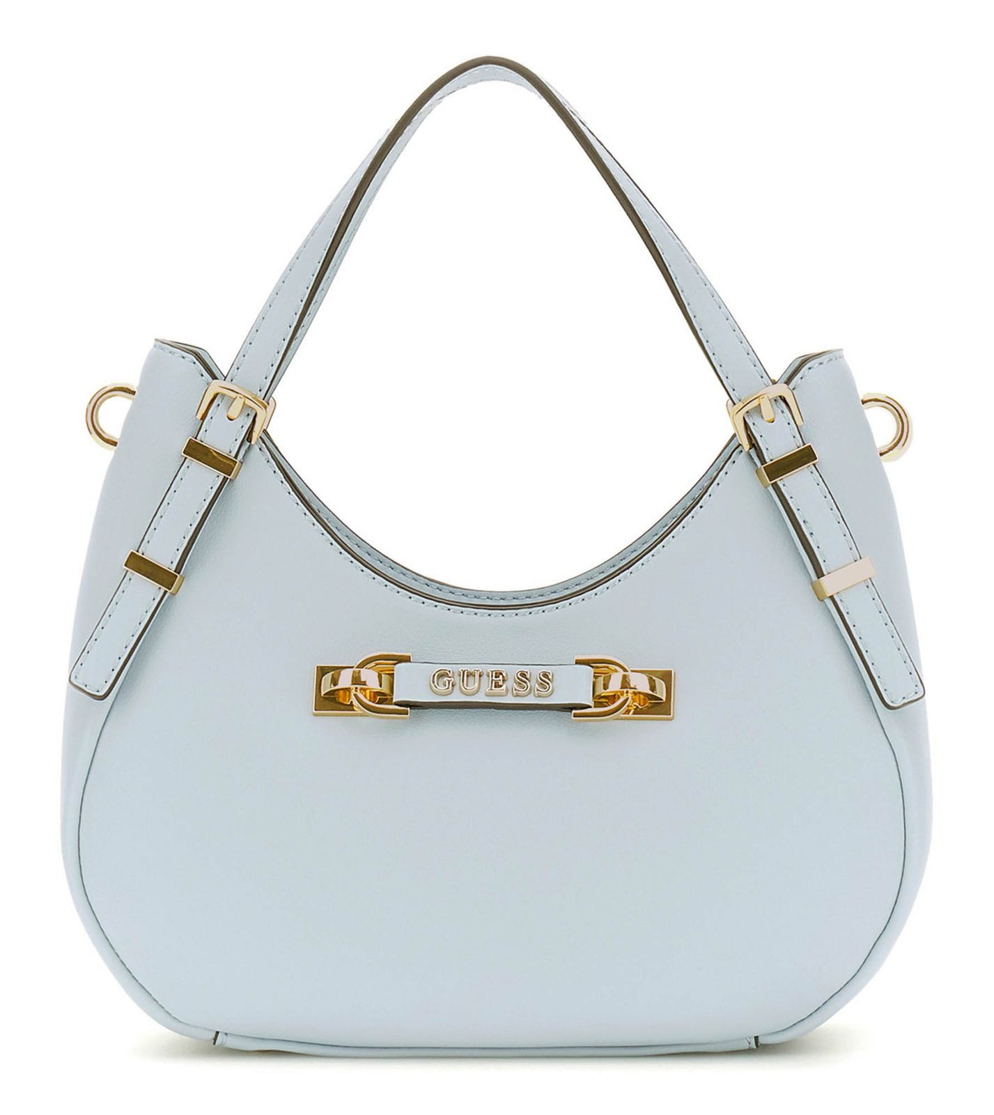 Wir haben uns in diese GUESS Handtasche verliebt, das können auch Sie! Geschmackvoll und modern zeigt diese Tasche, wie man immer stilvoll unterwegs sein kann. Das schlichte und moderne Design ist leicht zu vielen Looks zu kombinieren. Die GUESS Lefia Small Satchel Bag hat zudem ein Hauptfach, in das Smartphone, Geldbörse und Hausschlüssel kinderleicht hineinpassen. Bei diesem Schmuckstück hat GUESS Alltagstauglichkeit und Mode optimal kombiniert. Diese elegante und treue Umhängetasche sollten Sie sich nicht entgehen lassen!