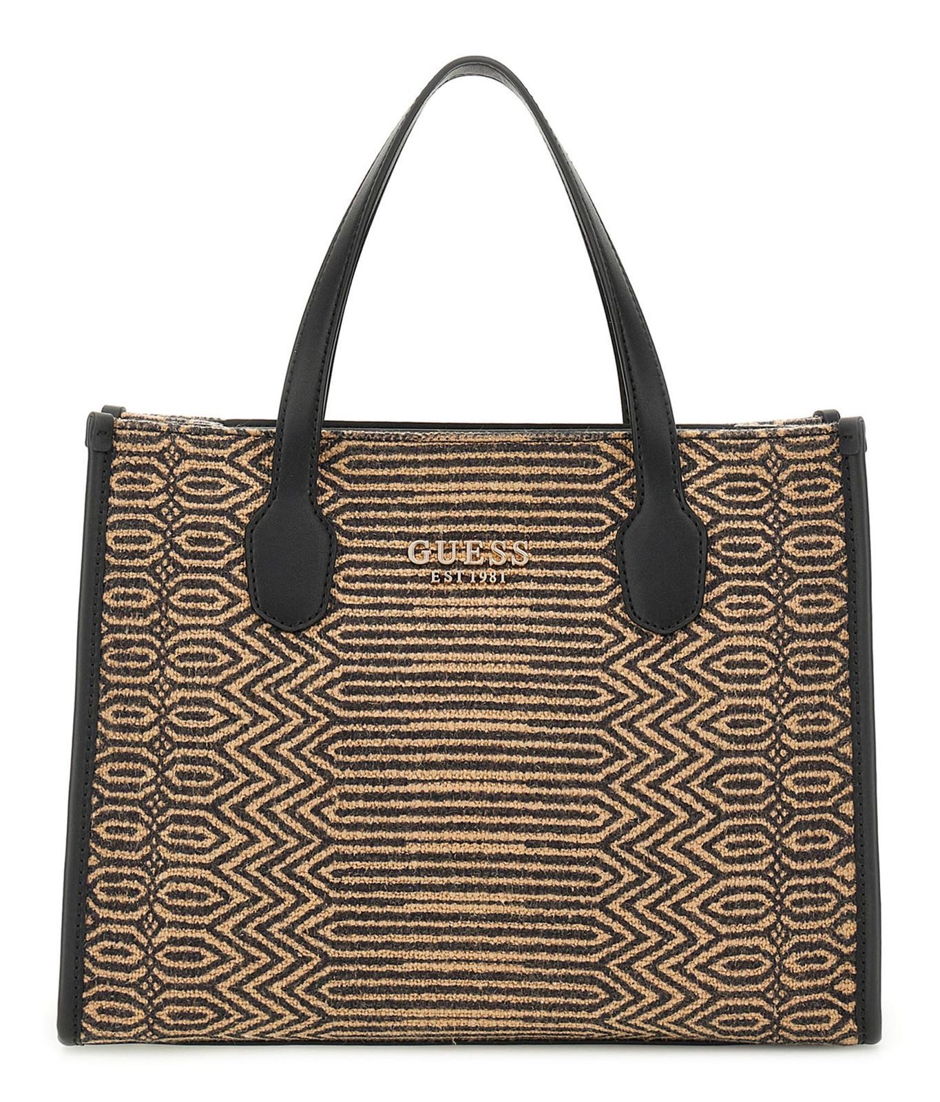 Mit dieser GUESS Handtasche in erfrischendem und markantem Design können Sie beneidende Blicke auf sich ziehen. Die Handtasche ziert ein auffälliges Muster. So beweisen Sie immer Stilsicherheit und Modebewusstsein. Diese Handtasche lässt sich zusätzlich mit einem Schulterriemen als Umhängetasche tragen. In dem unterteilten Hauptfach finden all Ihre Essentials einen eigenen Platz und sind dank des Verschlusses immer sicher verstaut. Diese GUESS Silvana Two Compartment Tote Handtasche wird Ihrem Look einen stilvollen Touch verleihen!