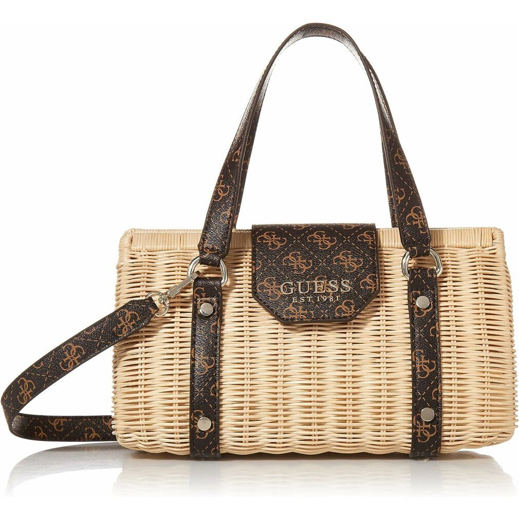 GUESS Handtasche Handtaschendaten im besonderen Look: o Maße: Breite ca. 28 cm, Höhe ca. 16 cm, Tiefe ca. 12 cm o Gewicht: ca. 810 Gramm o Farbe: Braun (beige/braun) o 2 Henkel: ca. 44 cm o 1 Schultergurt verstellbar und abnehmbar: ca. 115 cm - 138 cm o Material: außen 100 % Manila, innen 80 % Polyester, 20 % Baumwolle o Lieferumfang: GUESS Tasche mit Anhänger, Schultergurt, Dust Bag Equipment Tote : o Tragetasche mit Überschlag und Magnetverschluss o 1 Einschubfach im Hauptfach o Mit schützender Polsterung und fester Bodenplatte o Verfügt über ein geräumiges Hauptfach o Stabil o GUESS Logo Sichtbare GUESS Paloma Satchel ? Handtasche für einen tollen Look Mit GUESS haben Sie kann jederzeit eine fundierte Entscheidung treffen. Aber mit der GUESS Paloma Satchel Tote werden Sie ein Volltreffer sein. Das Design überzeugt von Anfang bis Ende und rundet Ihren Look perfekt ab. Aber auch die perfekte Kombination aus Qualität und Funktionalität machen diese Tasche zum idealen Alltagsbegleiter, der Ihnen den ganzen Tag über treue Dienste leisten wird. Diese Tasche hat unsere Herzen im Handumdrehen erobert. Mit ihr zeigen Sie den ultimativen Look!