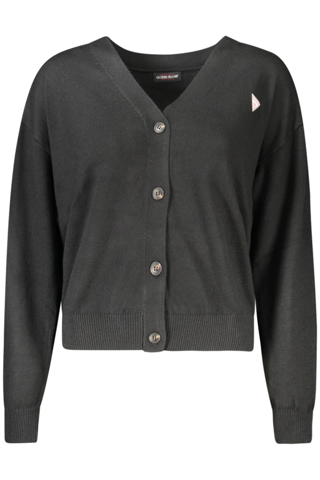 Besondere Merkmale | Eleganter Damen-Cardigan in Schwarz mit V-Ausschnitt und Applikation |