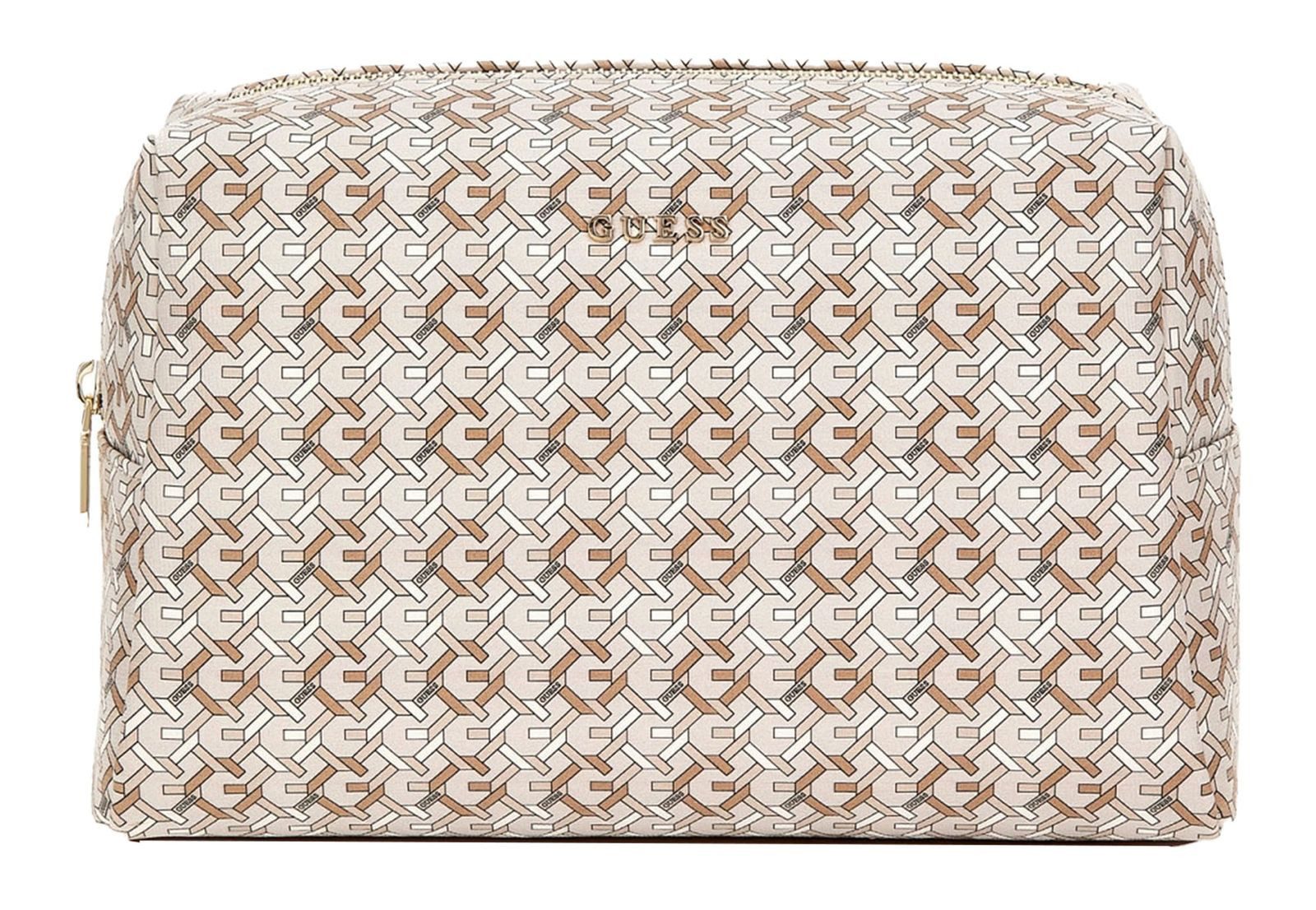 Zu Hause oder auf Reisen - diese Kosmetiktasche wird Sie erfreuen! Als besonders stylischer und edler Begleiter können Sie sich bei der GUESS Kosmetiktasche auf die Kombination von Funktionalität und einem besonderen Design freuen. Das Hauptfach bietet genügend Platz, um all Ihre Dinge für unterwegs unterzubringen. Die Kosmetiktasche glänzt mit ihrer tollen Form und dem klassischen GUESS-Design. Lassen Sie sich von dem GUESS Dome Top Zip Travel Case bei Ihrer nächsten Reise begeistern!