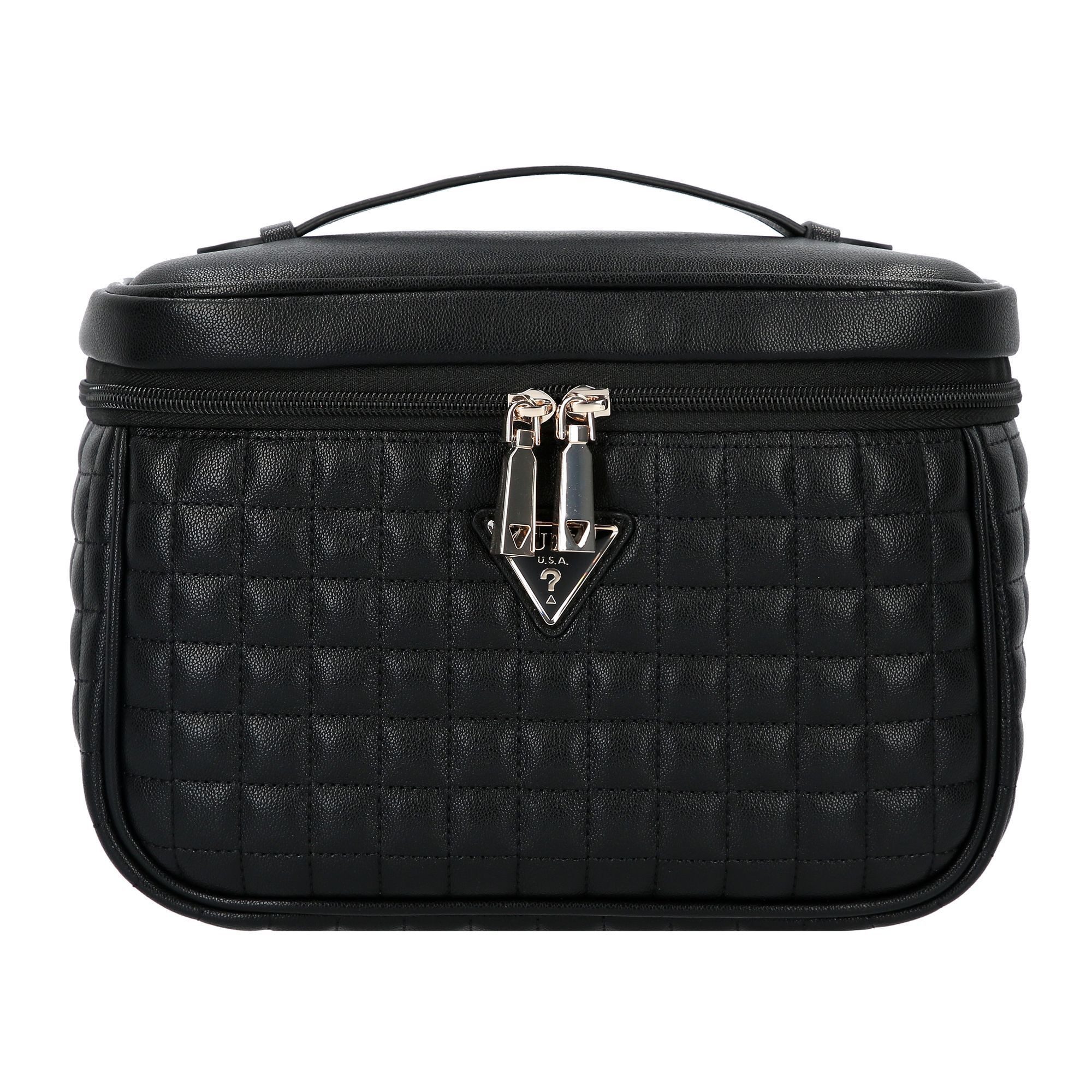 Mit dem Guess Kulturbeutel aus der Nadira-Serie wird jedes Reiseabenteuer zum stilvollen Vergnügen. Entworfen für den modernen Globetrotter, bietet dieses Accessoire ein geräumiges Reißverschlussfach und zusätzliche Innenfächer, um alle Beauty-Geheimnisse einsatzbereit zu halten. Dabei verspricht das langlebige Polyurethan-Material robuste Begleitung. Einfach durch den Tragegriff zu handhaben, macht dieser Kulturbeutel Organisation und Transport zum Kinderspiel. Klare Linien und raffiniertes Design machen das Must-have für jede Reise. Deshalb, liebe Abenteurer, warum nicht das Beste für die kosmetischen Reisebegleiter wählen? Der Guess Nadira Kulturbeutel wartet auf die nächste Entdeckungsreise!