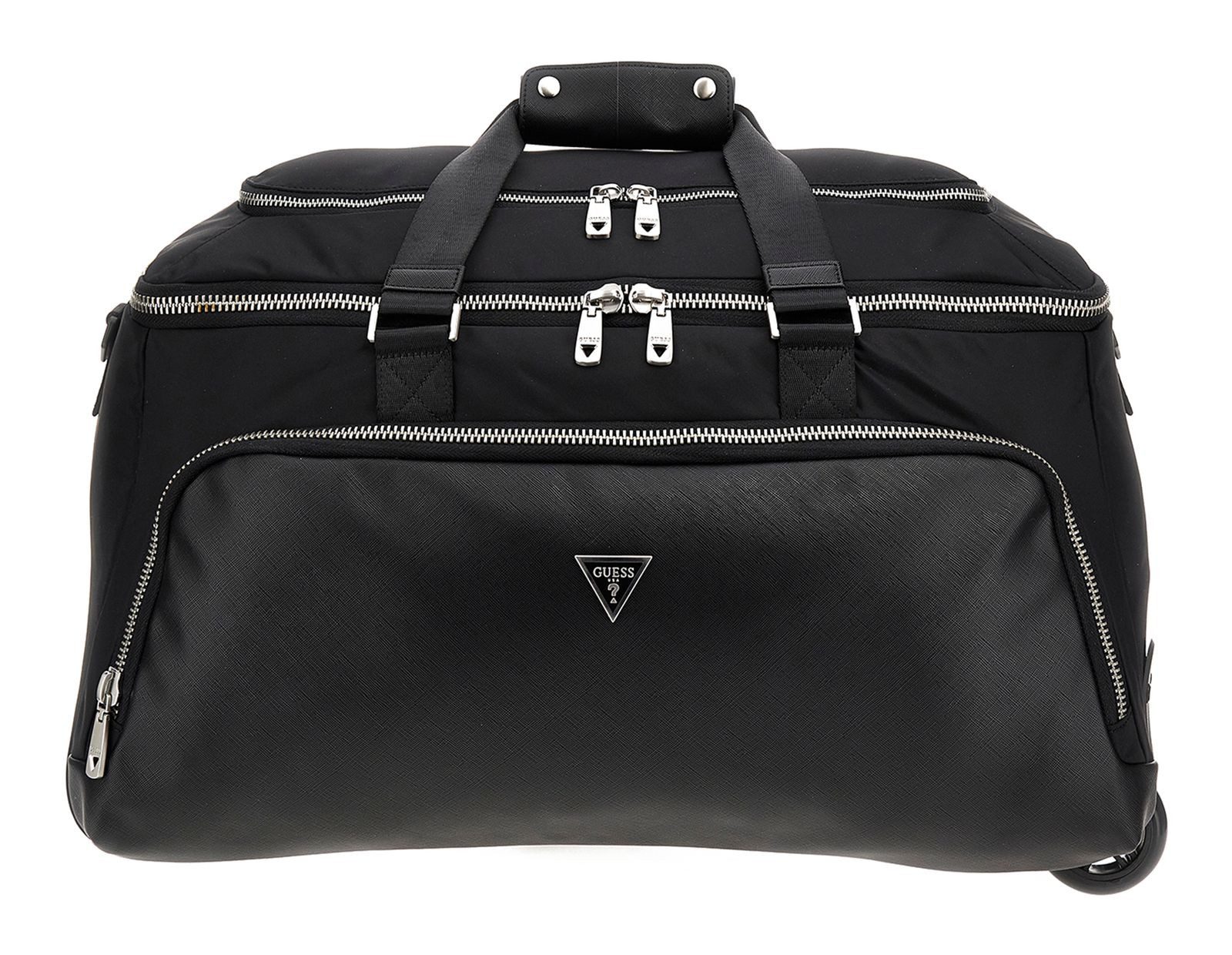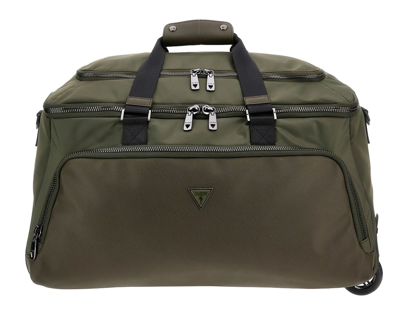 In dieser GUESS Reisetasche bekommen Sie all Ihre T-Shirts und Hosen für einen Kurzurlaub oder ein langes Wochenende unter und genießen dank Trolleysystem die Bequemlichkeit eines Trolleys. Natürlich finden Sie auch für Ihre restlichen Reiseutensilien einen Platz. Geordnet, mit vielen verschiedenen Fächern im Inneren, sodass nichts verrutscht, ist diese GUESS Bologna Wheeled Duffel Bag Reisetasche ein echter Helfer beim Reisen. Das Zipperfach auf der Oberseite ist von zwei Seiten zugänglich. Mit den zwei leisen Rollen sind Sie mit der Reisetasche schnell unterwegs und können diese entspannt hinter sich herziehen. Mit GUESS wird Ihr Urlaub von Anfang bis Ende entspannt!