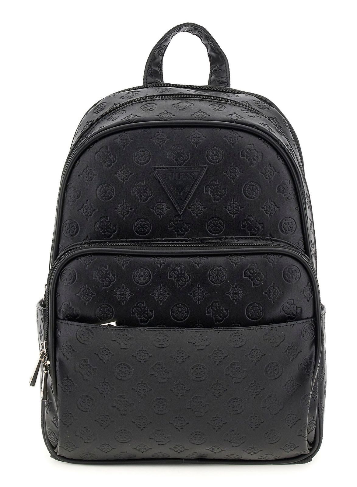 Dieser moderne Rucksack von der Marke GUESS ist ein wirklich nützliches und schönes Accessoire! Das cleane Design im Logo Muster wird Ihren Look ergänzen. Im Hauptfach haben Sie viel Platz, um all Ihre Utensilien, die Sie benötigen, unterbringen zu können! Zudem liegt der GUESS Wilder Backpack Rucksack bequem auf Ihren Schultern und die Schultergurte können ideal an Ihre Размер angepasst werden. Der Rucksack ist für DIN A4 geeignet. In dem gepolsterten Zipperfach am Rücken können Sie Ihren Laptop sicher verstauen.