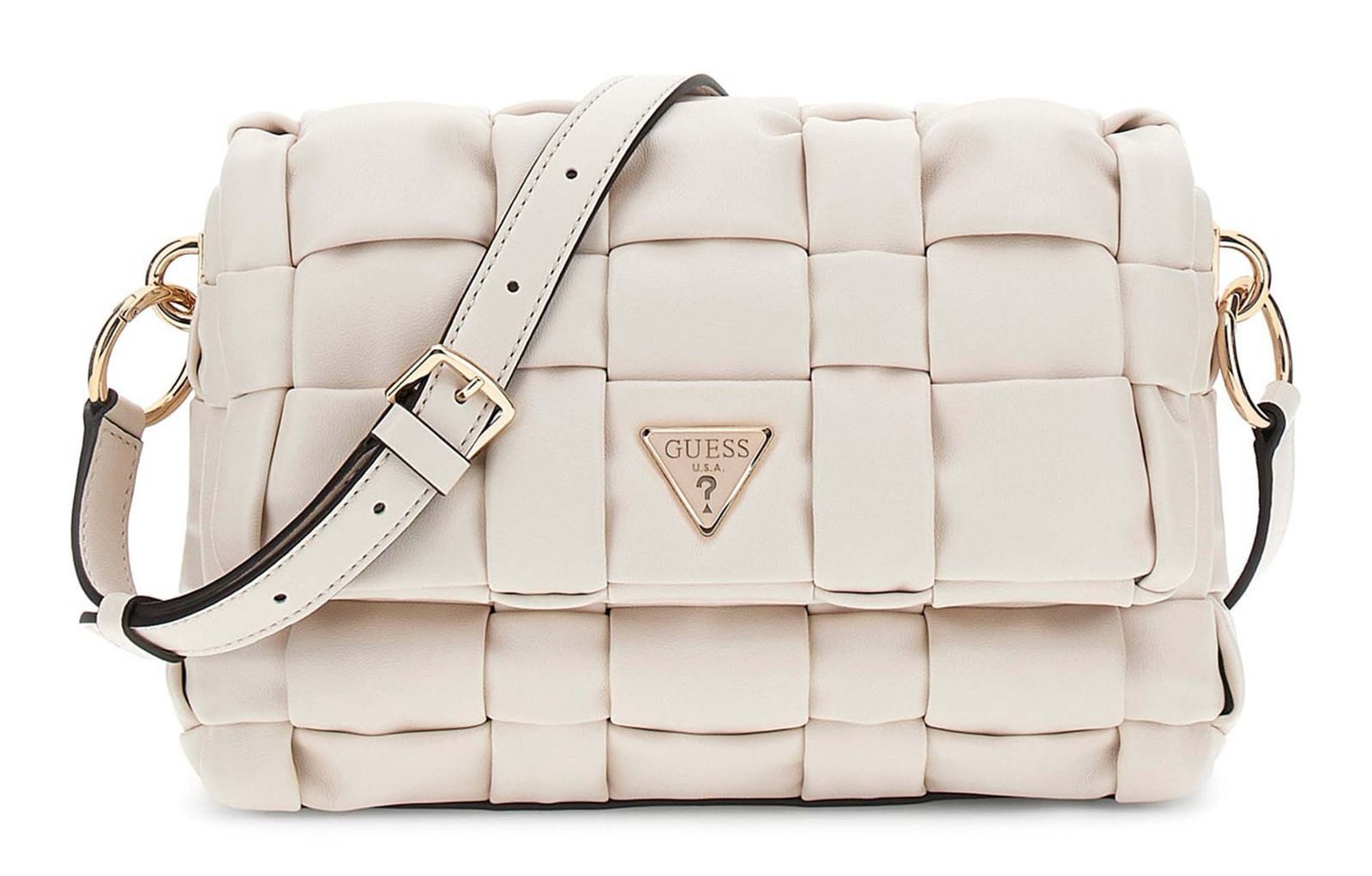 Mit der GUESS Marion Flap Shoulder Bag an Ihrer Seite werten Sie jedes Outfit gekonnt auf. Das ansprechende Design in praktischem Format überzeugt sofort und lässt sich durch seine modische Eleganz mit sämtlichen Outfits kombinieren. Im kompakten Hauptfach bringen Sie Smartphone und Geldbörse kinderleicht unter. Wir konnten dem Charme dieser Tasche nicht widerstehen!