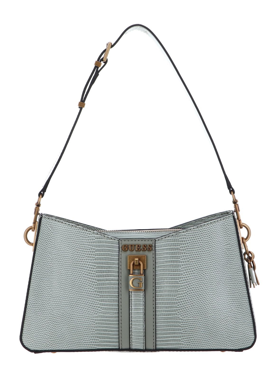 Die edlen goldfarbenen Details und das trendige Format verleihen diesem GUESS Ginevra Elite Shoulder Bag einen charmanten Look! Das schicke und gleichzeitig elegante Krokoleder-Design entzückt schon auf den ersten Blick und schenkt Ihnen ein Lächeln ins Gesicht. Leicht lassen sich Ihre Wertsachen in diesem eleganten Accessoire verstauen. Denn diese Schultertasche ermöglicht Übersicht und Ordnung bei all Ihren Kleinigkeiten, dank der verschiedenen Nebenfächern!