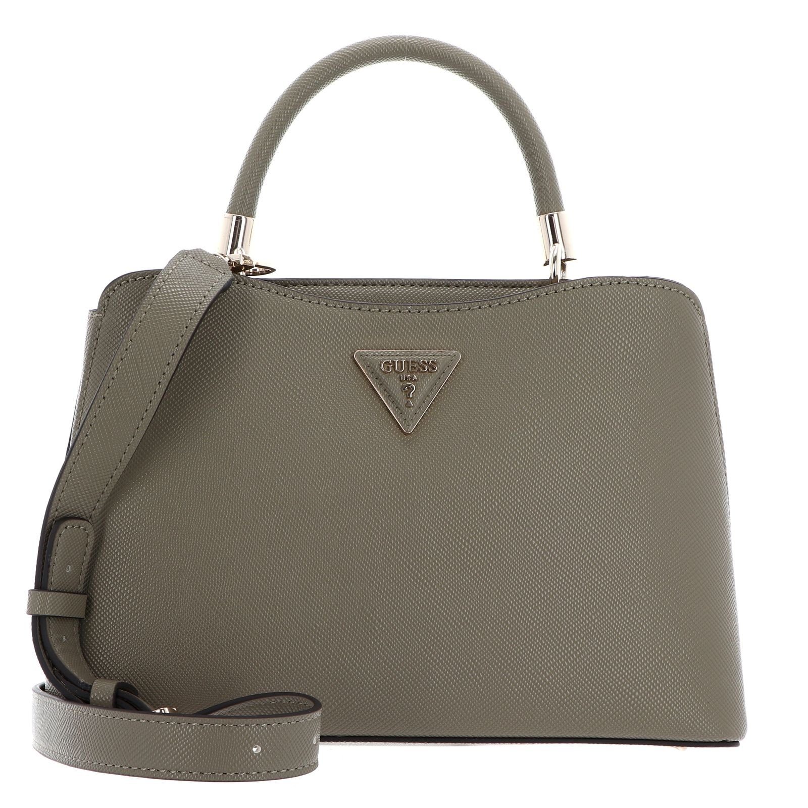 Die Marke GUESS hat sich mit dieser Tasche mal wieder selbst übertroffen. Sie suchen eine alltagstaugliche und moderne Tasche, für den Besuch im Café oder einen Stadtbummel? Dann treffen Sie mit dieser GUESS Gizele Compartment Satchel die richtige Wahl! Sie erwartet nicht nur ein wunderschönes Design mit edlem Muster, zahlreiche Fächer, die viel Platz für Ihre großen und kleinen Dinge bieten, sondern auch hochwertige Materialien, die qualitativ verarbeitet wurden! Tragen Sie die Compartment Satchel elegant mit den Henkeln am Arm oder legen Sie sie mit dem Schulterriemen lässig um. Mit der GUESS Gizele Compartment Satchel können Sie die Straßen unsicher machen!