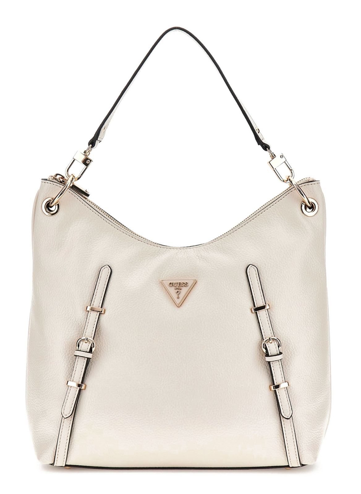 Mit dieser GUESS Levia Large Hobo können Sie entspannt in den Tag starten! Die Schultertasche in moderner Form überzeugt mit ihrer hochwertigen Verarbeitung, dem geräumigen Hauptfach und mit ihrem ansprechenden Design. Im Hauptfach haben Sie genug Platz, um all Ihre Utensilien aufzubewahren. Die Fächer im Inneren sind ideal, um Kleinigkeiten separat und schnell erreichbar unterzubringen. Lässig umgehängt und der Tag kann perfekt starten. GUESS hat mit dieser Tasche ein absolutes Must-Have erschaffen.