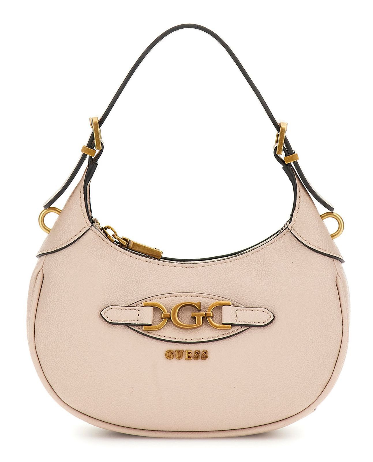 Die Schultertasche macht sich mit ihrem imposanten Äußerem direkt zum Trendsetter. Die genarbte Optik sticht einem sofort ins Auge. Im Inneren bietet die Tasche ausreichend Platz für Ihre wichtigsten Alltagsutensilien. Dank des verstellbaren Henkels können erleben Sie einen tollen Tragekomfort. Mit der GUESS Malva Mini Hobo Bag machen Sie immer eine gute Figur. Überzeugen Sie sich selbst!