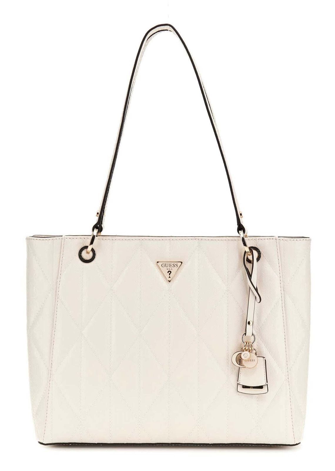 Diese GUESS Aldina Noel Tote Bag Schultertasche verschönert Ihnen mit ihrer noble Gestaltung den Tag. Sie ergänzt jeden Look dank edlem Design perfekt und wird viele neidische Blicke auf sich ziehen. Im Inneren haben Sie genug Stauraum für all Ihre Wertgegenstände und behalten dank der praktischen Aufteilung und einer Trennung in zwei Hauptfächer den perfekten Überblick. Die Noel Tote Bag verspricht angenehmen Tragekomfort mit den beiden Henkeln.