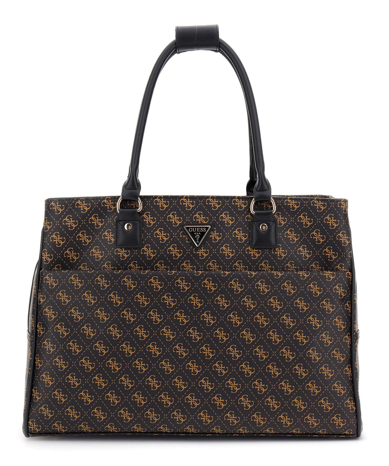 Dieser GUESS Jesco Shopper Tote ist ein echter Blickfang. Mit der Trolleyhalterung können Sie die Tasche auch anders transportieren. Diese kann aber auch zu einem Einschubfach umfunktioniert werden. Die Hauptfächer bieten viel Platz für Ihre Habseligkeiten, das gepolsterte Tablet und Laptopfach sind ein nächstes Highlight. Das i-Tüpfelchen ist das Logo-Muster Design. Die Form der Schultertasche rundet den Look nochmals ab. Freuen Sie sich also auf eine tolle Zeit mit Ihrer neuen Schultertasche.
