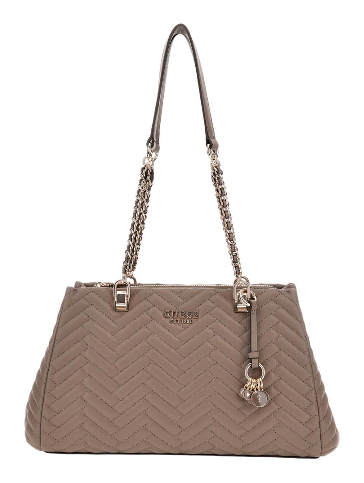 Die Marke GUESS hat mit der Anning Shoulder Satchel Bag etwas Besonderes geschaffen. Die GUESS Schultertasche wird Ihren Outfits einen eleganten und luxuriösen Schliff verleihen. Das markante Geometrisches Muster und der schicke Logo-Charm setzten die Tasche stylisch perfekt in Szene. Vornehm können Sie die Shoulder Satchel Bag auf der Schulter tragen und dabei kommt die moderne Form optimal zur Geltung. Haben Sie mit dieser Tasche Ihre Habseligkeiten immer stylisch an Ihrer Seite!