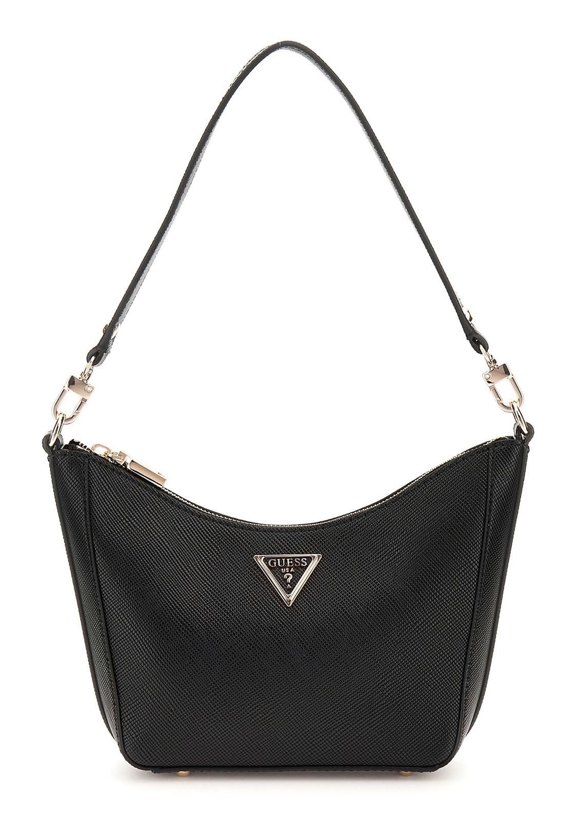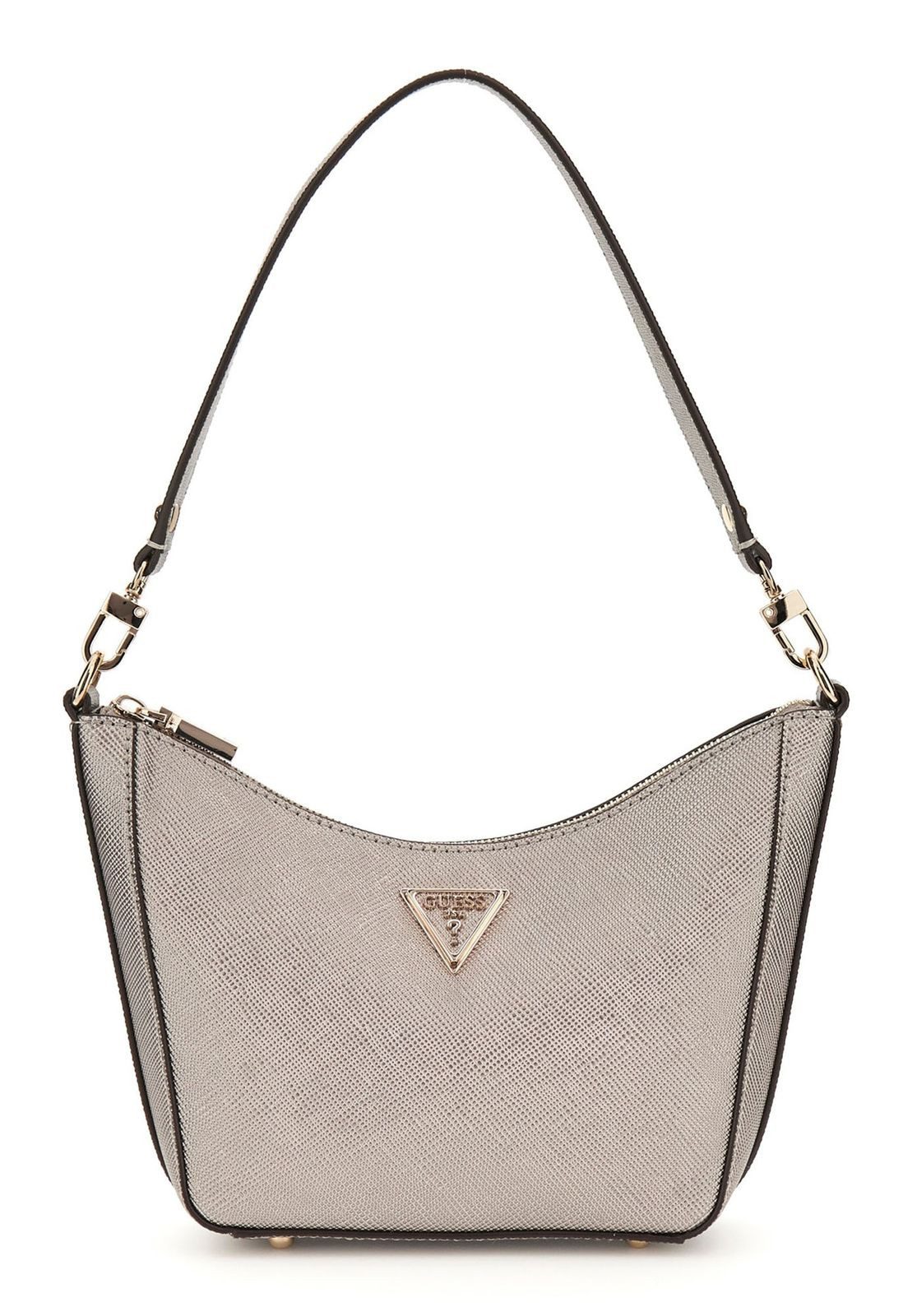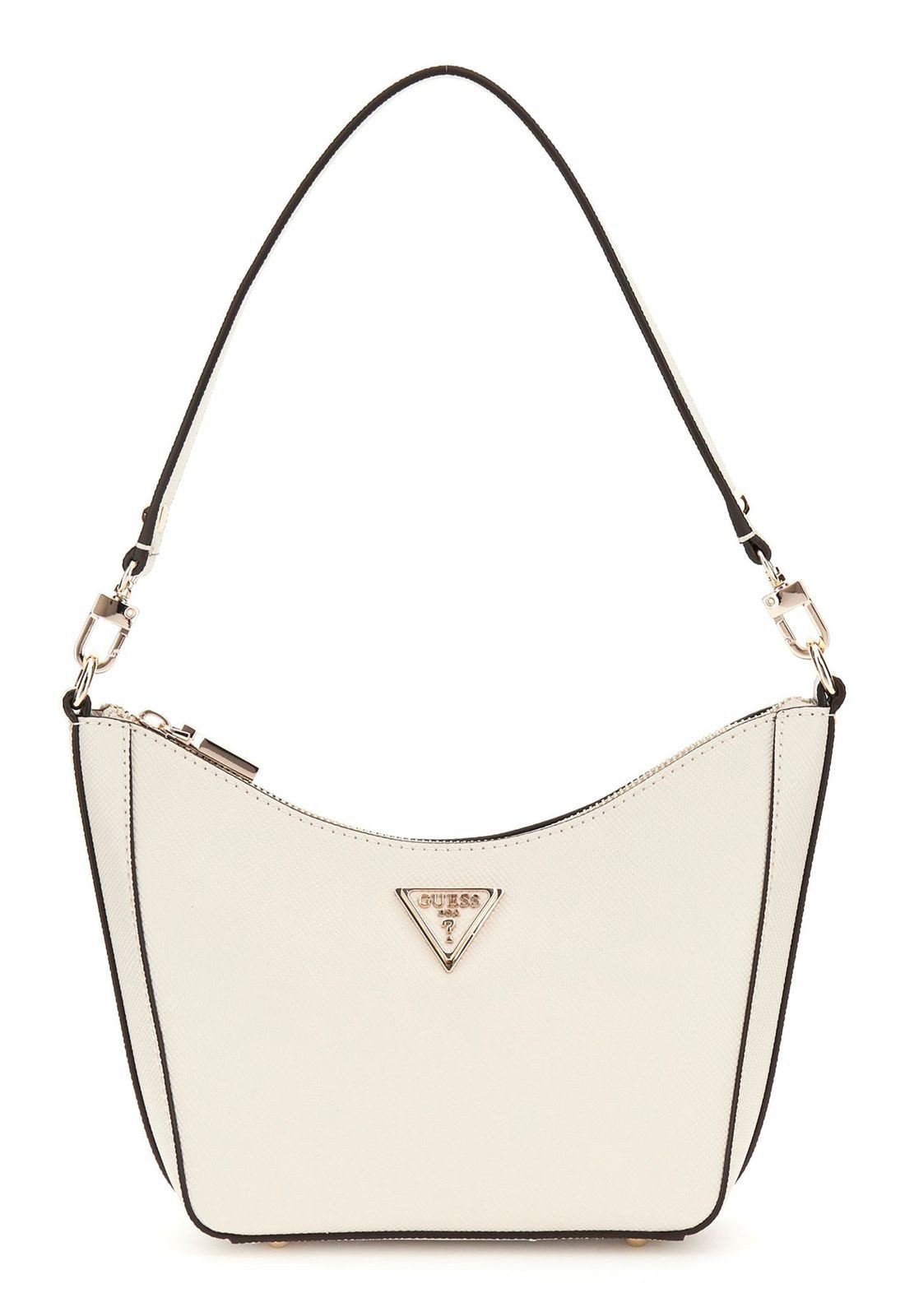 Die kleine GUESS Schultertasche setzt mit ihren goldfarben Details und dem aufgesetztem Logo eine elegante Nuance. Schnell ist man mit ihr über die Schulter gelegt, top gestylt und kann loslegen. Das kompakte Format ist in einer einprägsamen Form und schenkt einen einzigartigen Look. Wertsachen können hier prima verstaut werden und mit dem Zipper kommen Sie schnell an alles ran. Dass die Tasche ein leichtes Gewicht hat, macht das Tragen besonders angenehm. Mit dem abnehmbaren Schulterriemen und Henkel kann sie variabel getragen werden. Hier ist GUESS wirklich alles gelungen!