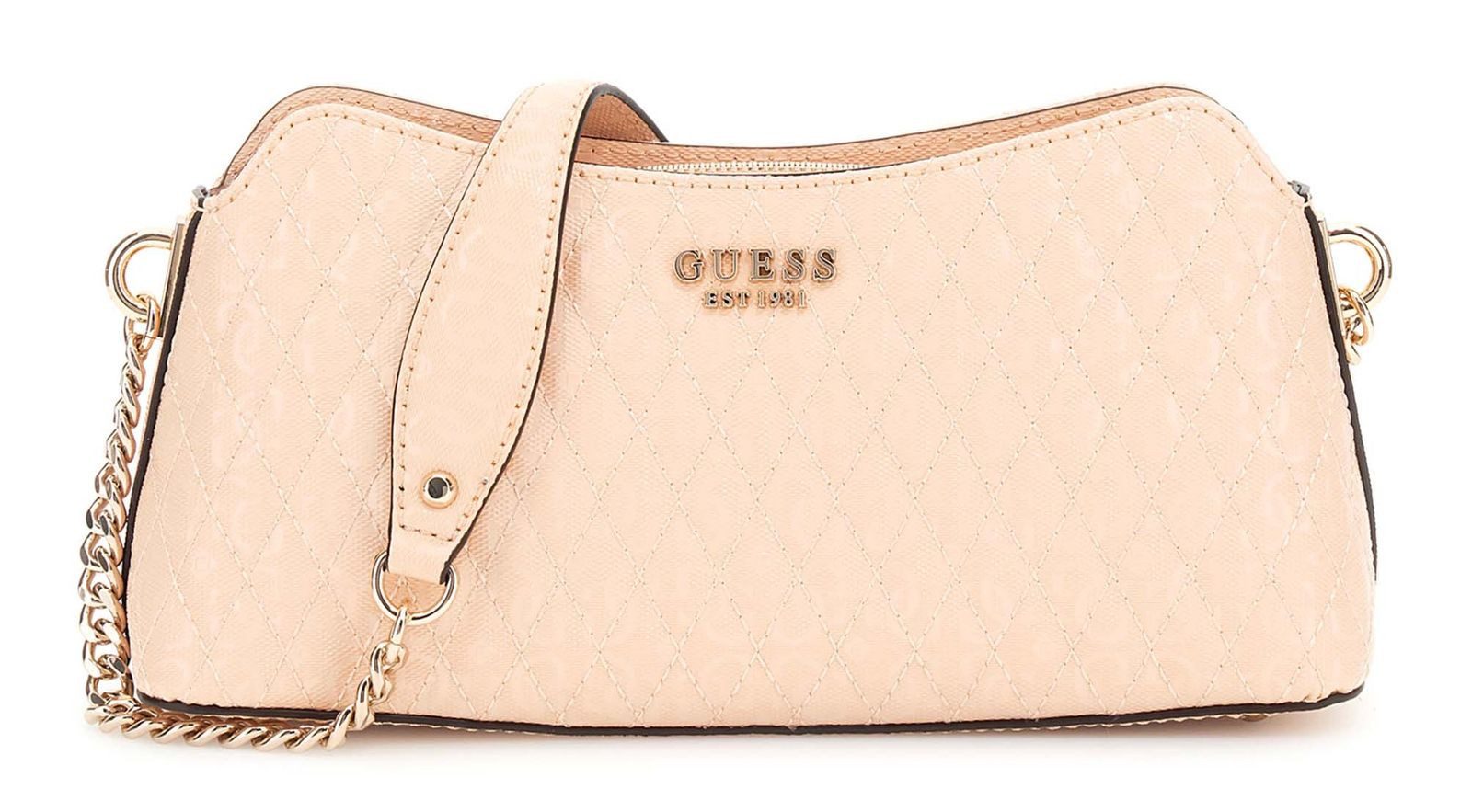 Mit dieser GUESS Schultertasche haben Sie Ihre Habseligkeiten immer stilvoll an Ihrer Seite. Wertsachen können hier spielend leicht in dem gut strukturierten Innenleben verstaut werden. Die elegante GUESS Schultertasche setzt mit ihren goldfarben Details, dem Logomuster und der Lack-Optik im gesteppten Format eine edle Nuance. Die smarte und einprägsamen Form und schenkt einen einzigartigen Look. Dass die Tasche ein leichtes Gewicht hat, macht das Tragen besonders angenehm. Hier ist GUESS wirklich alles gelungen!