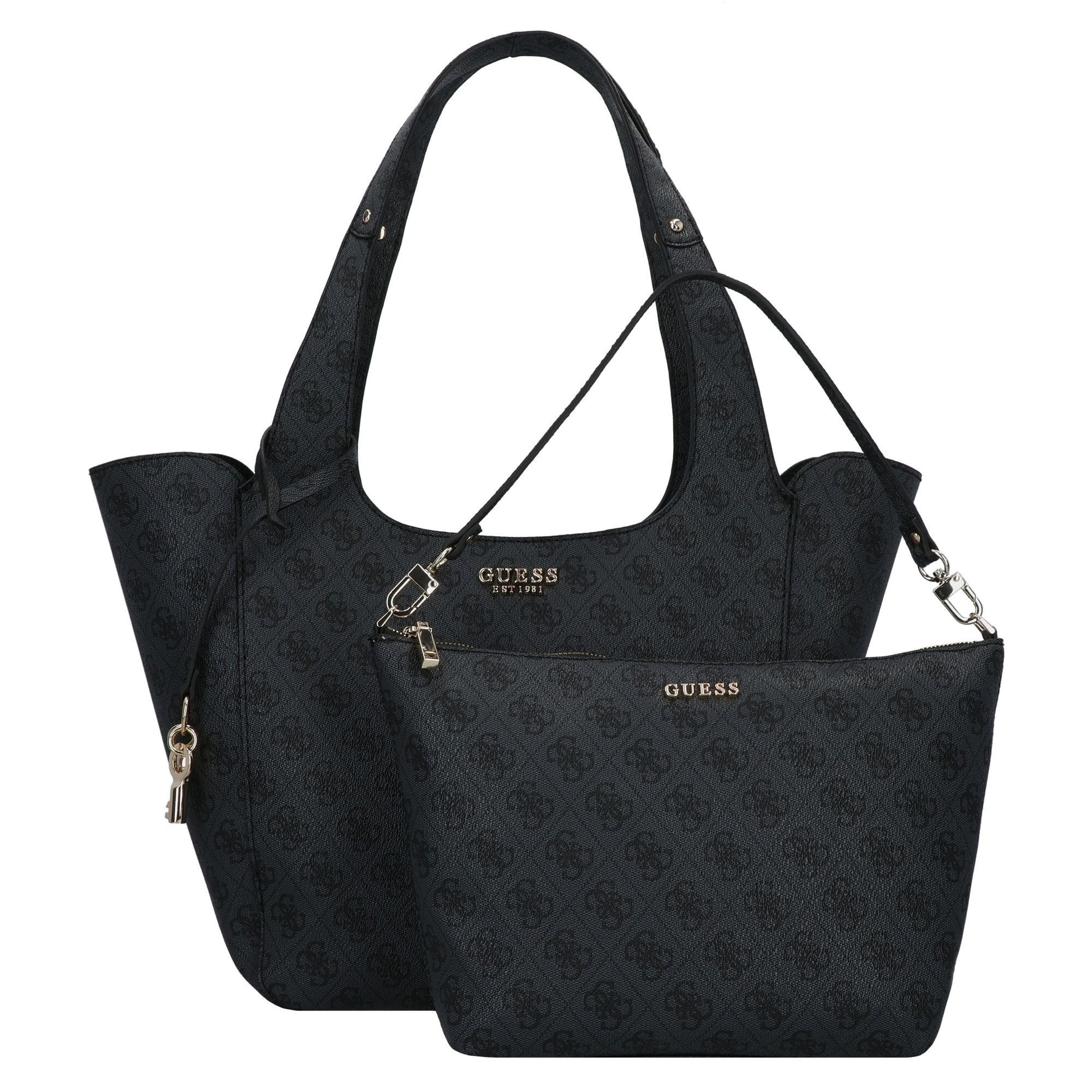 Eine Shoppertasche, bei der man nicht nur die exklusive Guess-Markenqualität spürt, sondern auch das attraktive Calista-Design in jeder Naht sieht. Mit ihren Polyurethanmaterialien hält diese Tasche jedem Alltagstest stand, während die magnetischen und Reißverschlussverschlüsse ein sicheres und praktisches Verstauen gewährleisten. Zwei geräumige Hauptfächer und zusätzliche Innentaschen sind bereit, Ihre unverzichtbaren Gegenstände aufzunehmen. Noch besser, eine herausnehmbare Tasche sorgt für mehr Flexibilität. Mit dem mittellangen Umhängeriemen kann man diese Tragetasche nach Belieben anpassen. Schick, widerstandsfähig und perfekt für die moderne Frau, macht man mit dieser Tasche alles richtig! Maße: Schultertasche 45 cm x 14 cm x 25 cm 0,59 kg; Handtasche 26 cm 14 cm 25 cm 0,17 kg.