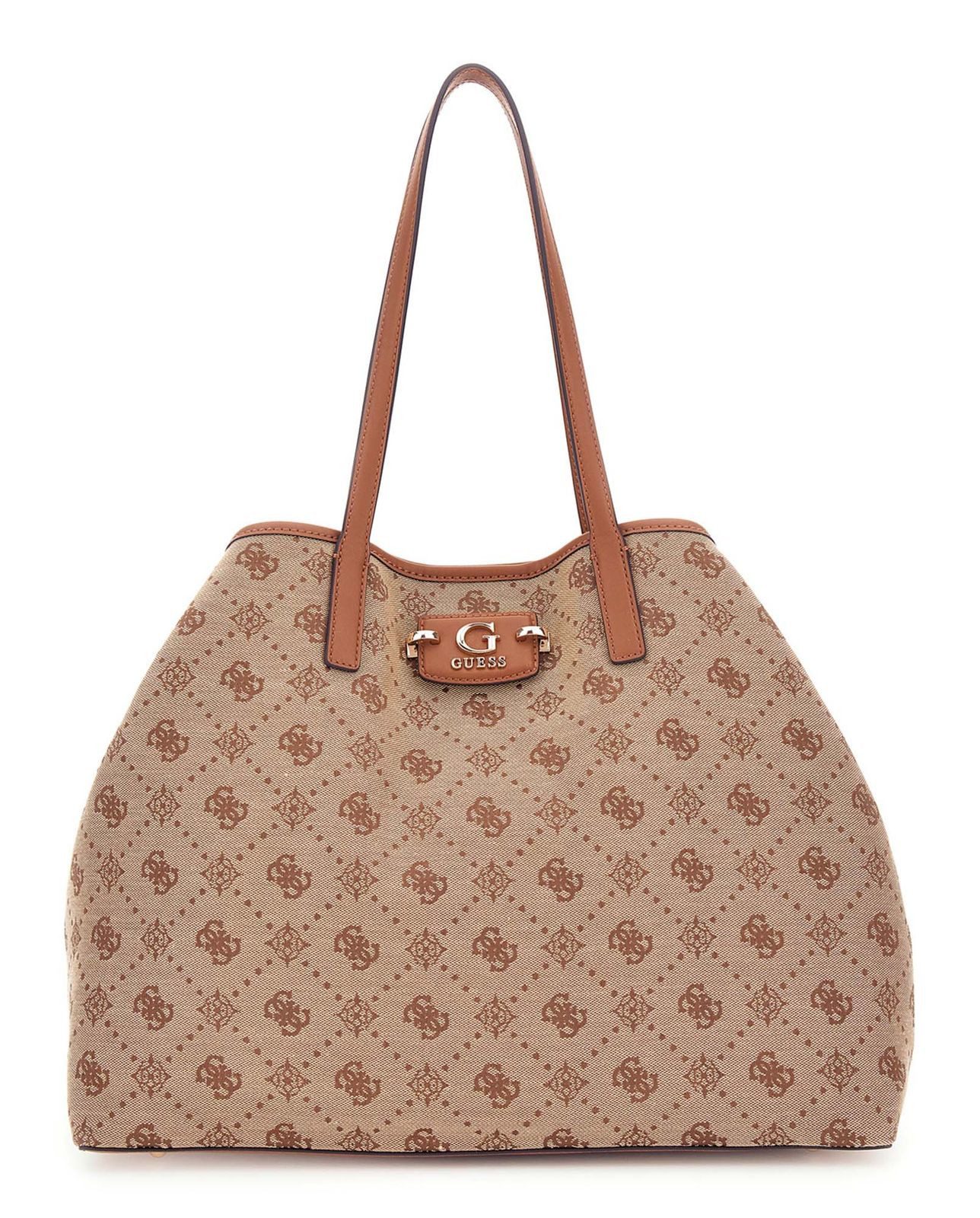 Mit diesem schicken GUESS Artikel an Ihrer Seite können Sie sorglos in den Alltag starten! Der edle Shopper in modischem Canvas Stil vereint stilvolle Ästhetik mit praktischer Funktionalität und ist damit der perfekte Begleiter für jede Gelegenheit. Die robusten Henkel ermöglichen es den Shopper angenehm über der Schulter zu tragen. In der abnehmbaren Utensilientasche können Sie Ihre wichtigsten Essentials geordnet verstauen. Der GUESS Neda Large 2 In 1 Tote Bag L Shopper ist einfach ein absolutes Must-Have!