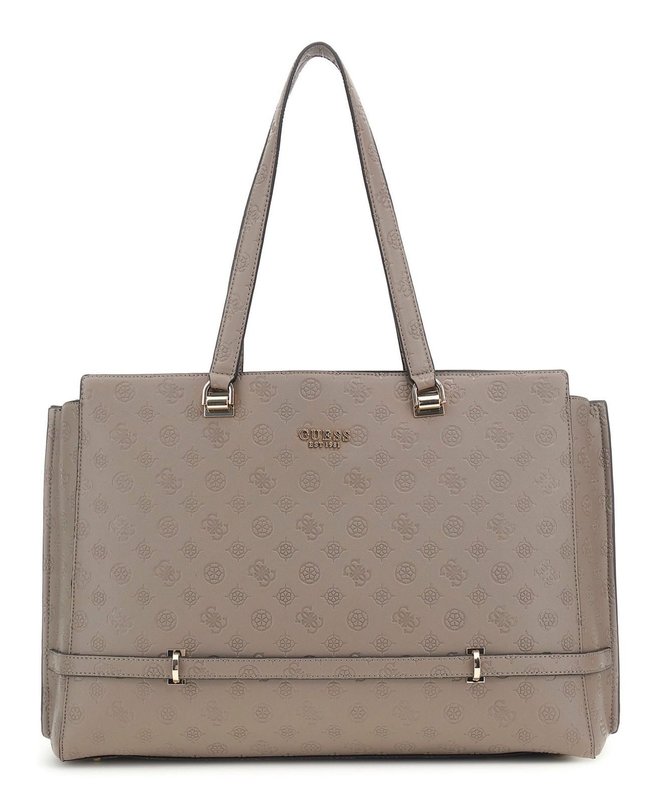 GUESS hat mit dieser Reisetasche ansprechende Optik und Funktionalität optimal vereint. Die Trolleyhalterung auf der Rückseite kann durch einen Zipper zu einem Einschubfach mit Magnetverschluss umfunktioniert werden. Unglaublich, nicht wahr? In dem geräumigen unterteilten Hauptfach der Tasche können Sie all Ihre Einkäufe und Wertsachen geordnet unterbringen. Auch für kurze Trips können Sie hier alles Notwendige verstauen. Dieser Shopper ist also wirklich vielseitig einsetzbar. Das Logomuster lässt sich mit allen Looks perfekt kombinieren und peppt jedes Outfit gekonnt auf. Lassen Sie sich dieses Schmuckstück nicht entgehen und gehen Sie stylisch durch den Alltag mit der GUESS Zarela Shopper Tote!