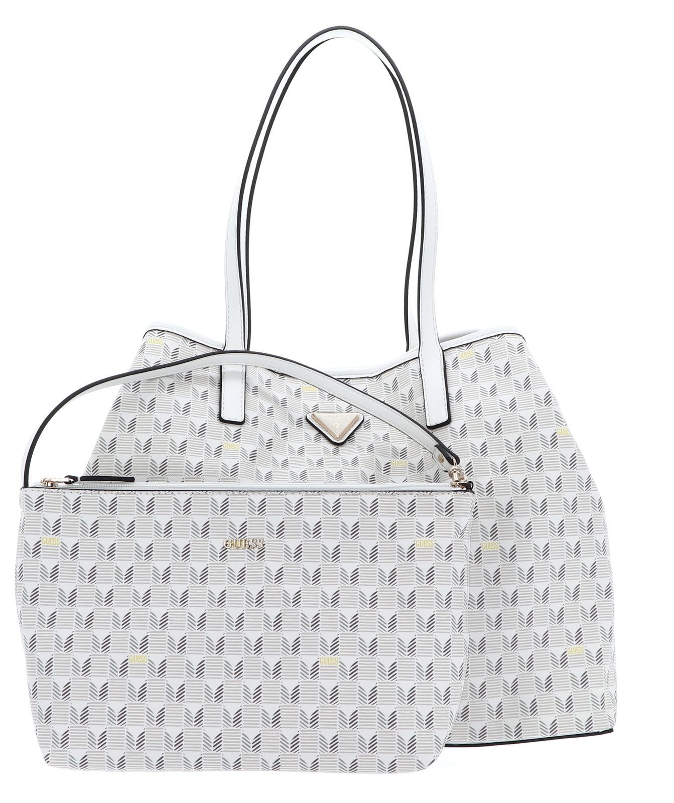 Mit diesem GUESS Accessoire haben Sie ein wahres Platzwunder gefunden! Mit diesem Artikel erhalten Sie nicht nur einen Shopper, sondern auch eine passende Utensilientasche. Diese stilvolle Utensilientasche kann mit ihrem Henkel bequem über den Arm gehängt werden. Die GUESS Vikky II Tote Bag überzeugt zudem mit einem geräumigen Hauptfach, in welchem all Ihre Alltagsessentials gekonnt einen Platz finden werden!