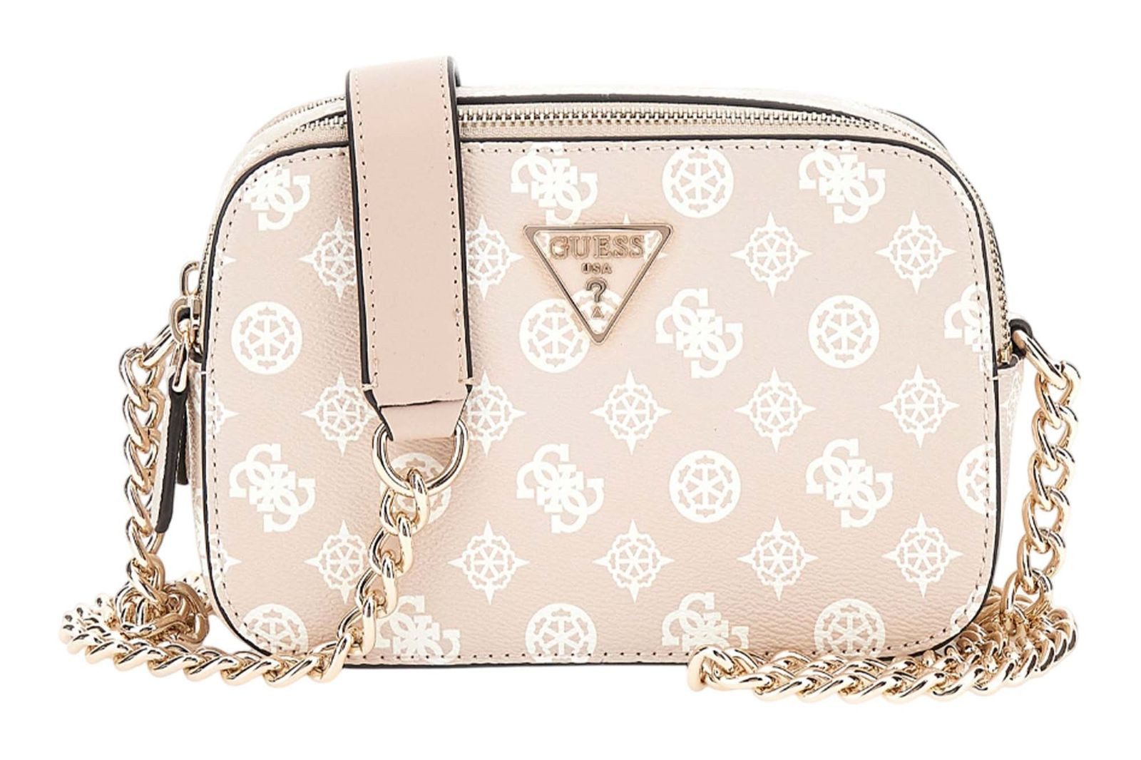 Mit dieser schicken GUESS Umhängetasche an Ihrer Seite machen Sie einen stilvollen Eindruck bei jedem Anlass. In den beiden großzügigen Hauptfächern finden Ihre wichtigen Essentials Platz. Die integrierten Kartenfächer sorgen für eine sichere und übersichtliche Aufbewahrung Ihrer Karten. Die robuste, verstärkte Kette verleiht der Tasche einen edlen Touch und sorgt gleichzeitig für einen sicheren Halt. Das tolle Logomuster unterstreicht die hochwertige Verarbeitung und den exklusiven Charakter der Tasche. Die GUESS Noelle Crossbody Camera Bag Umhängetasche ist einfach ein absolutes Must-Have!