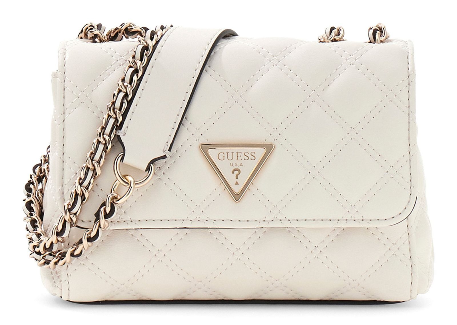 Deutlich markiert mit dem Status eines Modestatements, spiegelt die Giully II Mini Bag der Marke Guess exquisiten Stil und Individualität wider. Diese Damenhandtasche besticht durch cleveren Komfort und raffinierte Ästhetik mit zwei großzügigen Hauptfächern und einem angenehm praktischen Magnetverschluss. Entworfen aus robustem Polyurethan, verspricht diese Tasche Langlebigkeit und einen schicken, modernen Look. Der verstellbare Umhängeriemen bietet Flexibilität, während der mittellange Hauptgurt ein sofort einsatzbereites Accessoire ermöglicht. Dieses Must-have bietet die ideale Kombination aus Luxus und Alltagstauglichkeit. Machen Sie Ihre Fashion Statements mit dieser Guess Mini Bag.