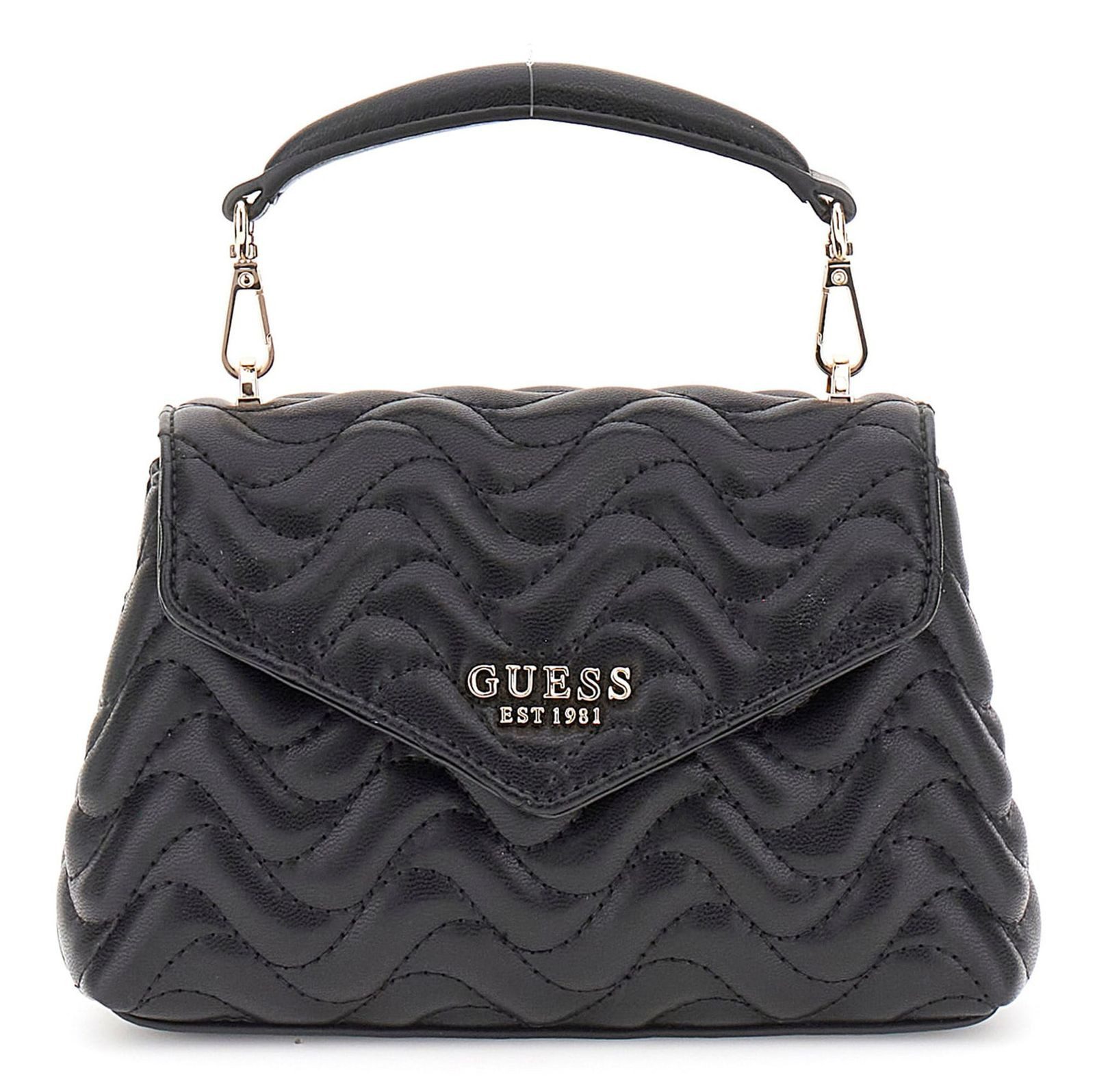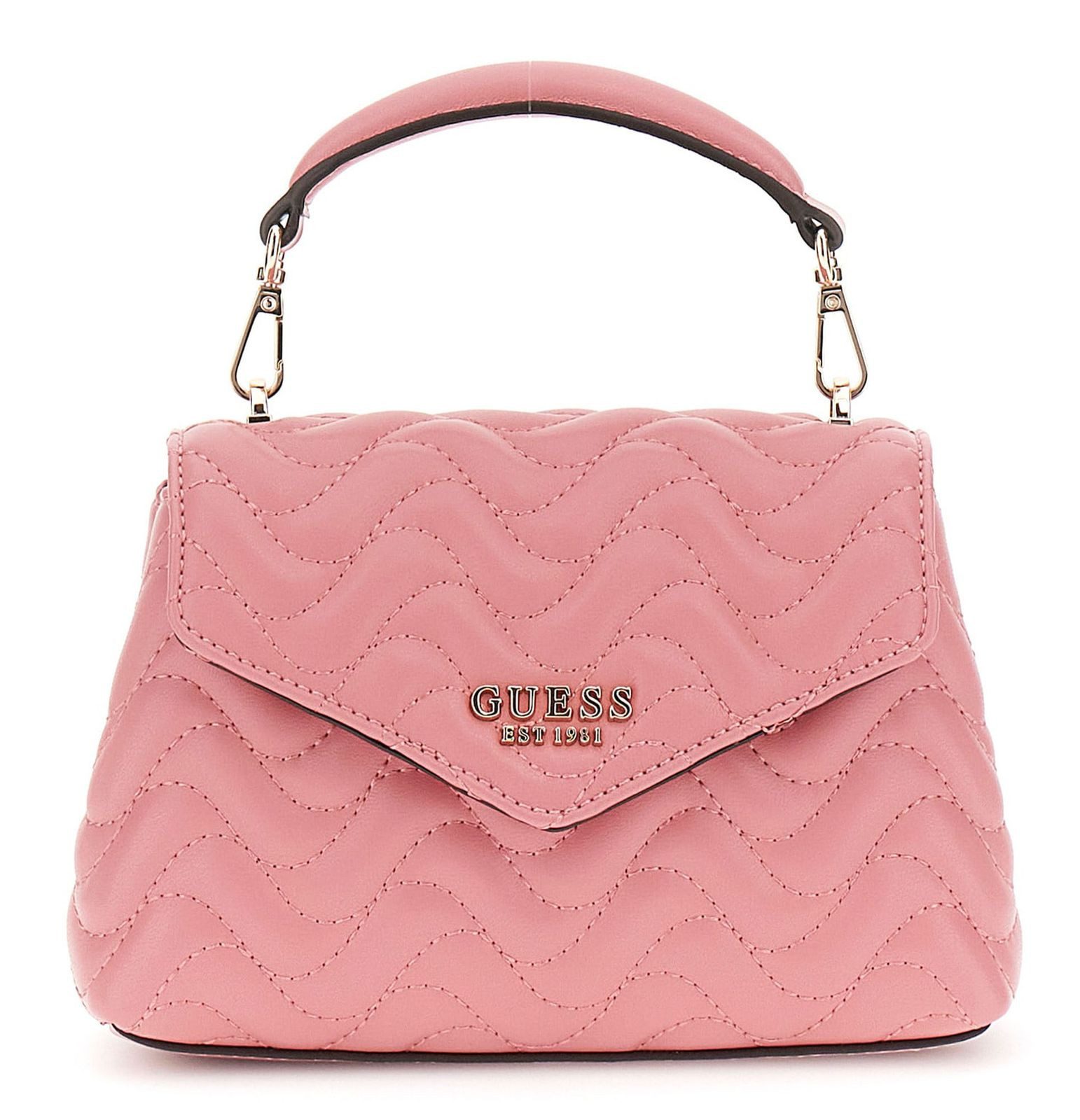 Diese GUESS Tasche im edlen Look wird mit der schicken Logo-Applikation auf der Vorderseite, ein echter Hingucker sein. Einfach kombiniert mit jeglichen Outfits zieht die kleine Tasche die Aufmerksamkeit auf sich. Im Inneren kommen Ihre Kleinigkeiten stilvoll unter. Die Umhängetasche kann sowohl schick am Tragegriff als auch klassisch an dem abnehmbaren Schulterriemen getragen werden. Die GUESS Melisandra Mini Top Handle Flap sollte in keiner Taschensammlung fehlen!