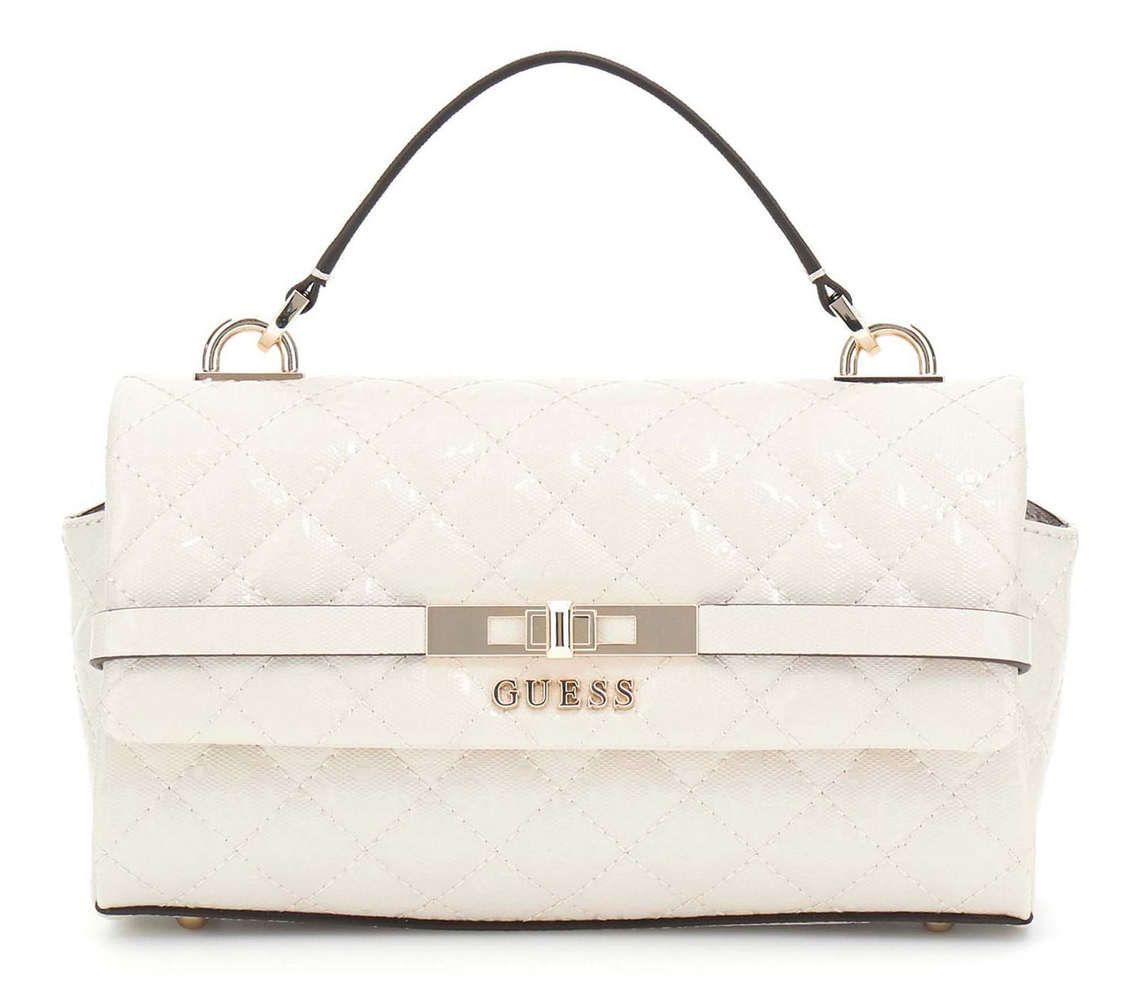 Diese elegant designte GUESS Idra Top Handle Flap Bag ergänzt jeden Ihrer Looks gekonnt! Dank des Schulterriemens können Sie diese Umhängetasche schnell und einfach auf Ihre gewünschte Размер anpassen. Das Hauptfach bietet ausreichend Platz, um Ihre wichtigsten persönlichsten Gegenstände unterzubringen. Diese GUESS Idra Top Handle Flap Bag Tasche wird Sie stilsicher und modisch durch Ihren Tag begleiten!