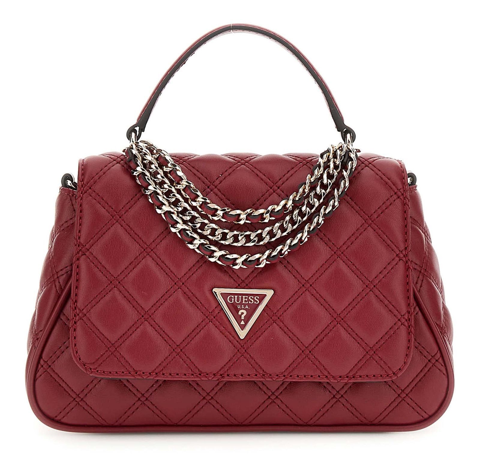 Diese elegant designte GUESS Giully II Top Handle Flap Bag ergänzt jeden Ihrer Looks gekonnt! Dank des Schulterriemens können Sie diese Umhängetasche schnell und einfach auf Ihre gewünschte Размер anpassen. Das Hauptfach bietet ausreichend Platz, um Ihre wichtigsten persönlichsten Gegenstände unterzubringen. Diese GUESS Giully II Top Handle Flap Bag Tasche wird Sie stilsicher und modisch durch Ihren Tag begleiten!