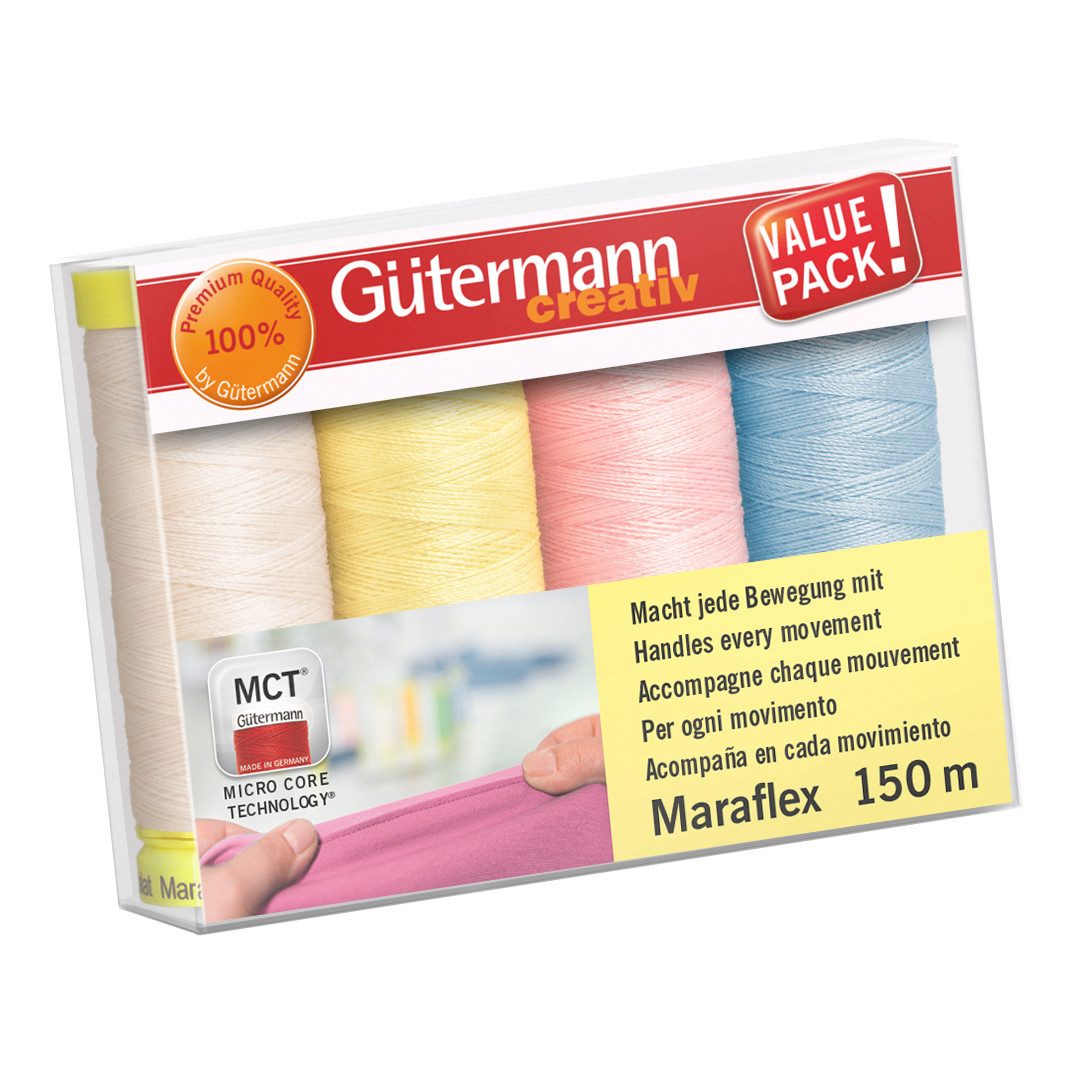 Das Nähfaden-Set Maraflex ist die perfekte Wahl für alle, die ihre Nähte flexibel und dehnbar gestalten möchten. Mit 4 Spulen à 150 m in verschiedenen Farben bist du bestens ausgestattet. Der elastische Nähfaden eignet sich ideal für Haushaltsnähmaschinen und ermöglicht spielend leicht dehnbare Nähte in Geradstich-Optik – ganz ohne Overlock- oder Coverlock-Nähmaschine. Mit einer Dehnung von bis zu 80 % sind deiner Kreativität keine Grenzen gesetzt.
