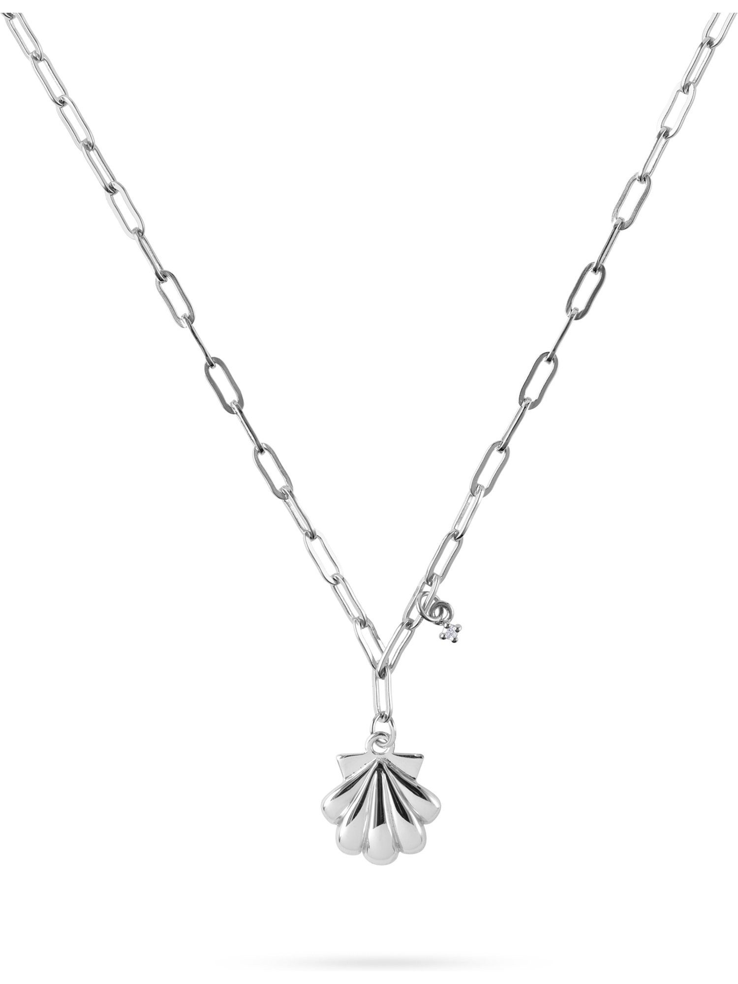 Beach-Vibes für dein Schmuckkästchen: An dieser mittellangen Halskette aus der Kollektion von Top-Designer Guido Maria Kretschmer baumelt ein muschelförmiger Anhänger. Rhodiniertes 925er Silber schenkt ihm einen spektakulären Glanz. Ein funkelndes Detail ist der 2. Anhänger, in dem ein kostbarer Brillant eingefasst ist. Die längenverstellbare Kette ist im angesagten Paperlink-Stil mit offenen Gliedern gestaltet – wo du den Karabinerverschluss einhakst, entscheidest du frei!