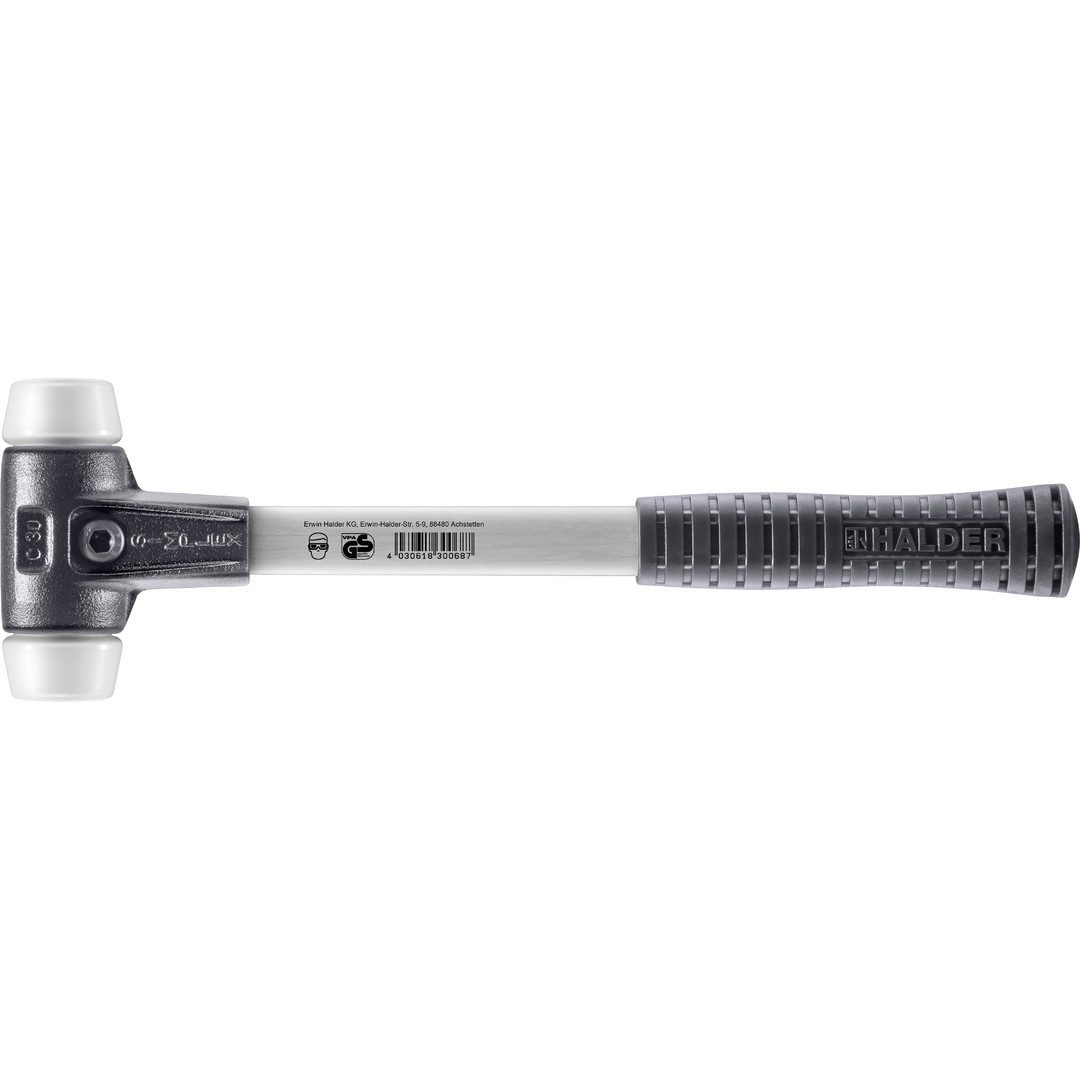 SIMPLEX–Schonhammer mit beidseitig Superplastik-Einsätzen (weiß, mittelhart, sehr widerstandsfähig).