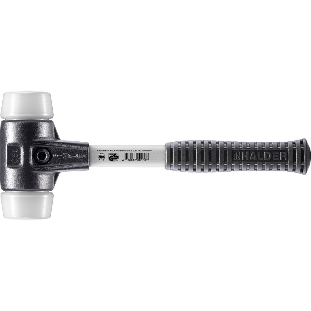 SIMPLEX–Schonhammer mit beidseitig Superplastik-Einsätzen (weiß, mittelhart, sehr widerstandsfähig).