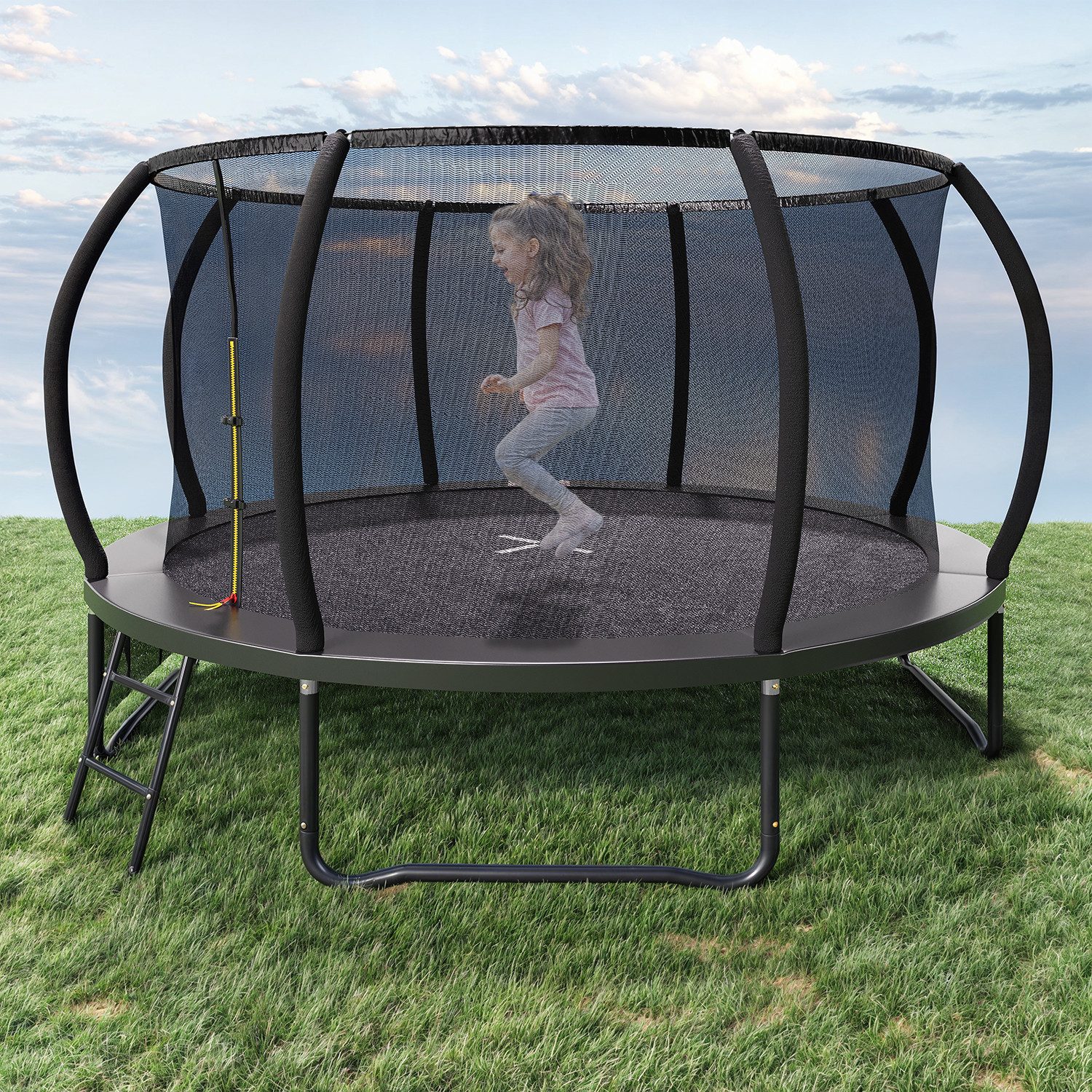 Es sind vier Größen erhältlich: 244 cm, 305 cm, 366 cm und 427 cm, die für alle Altersgruppen geeignet sind, von kleinen Höfen bis hin zu großen Außenbereichen. Dank des großen Durchmessers können nicht nur Kinder ungehindert springen, sondern auch Erwachsene können sich problemlos strecken und den Spaß mit der ganzen Familie teilen.