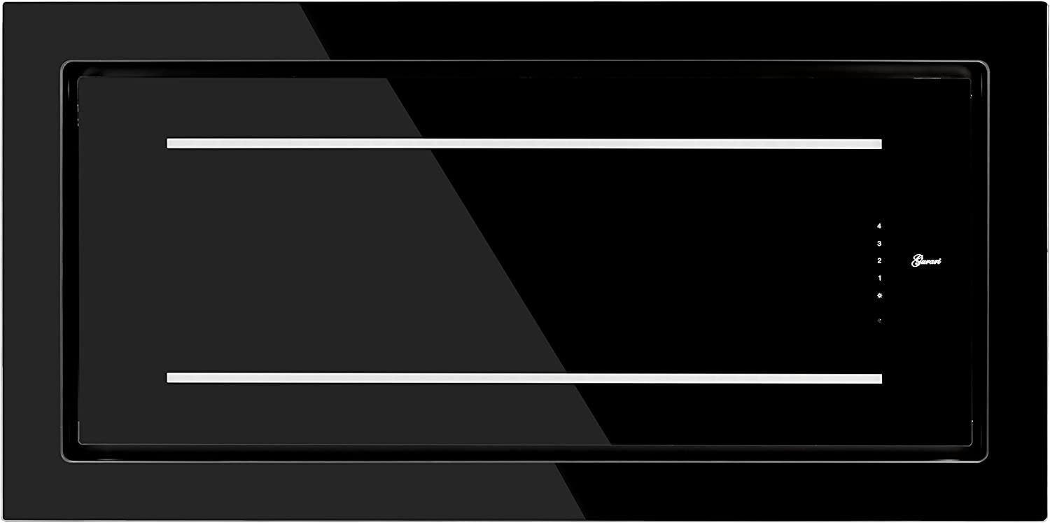 Exklusive Deckenhaube in Schwarz/ Schwarz Glas Ausführung.